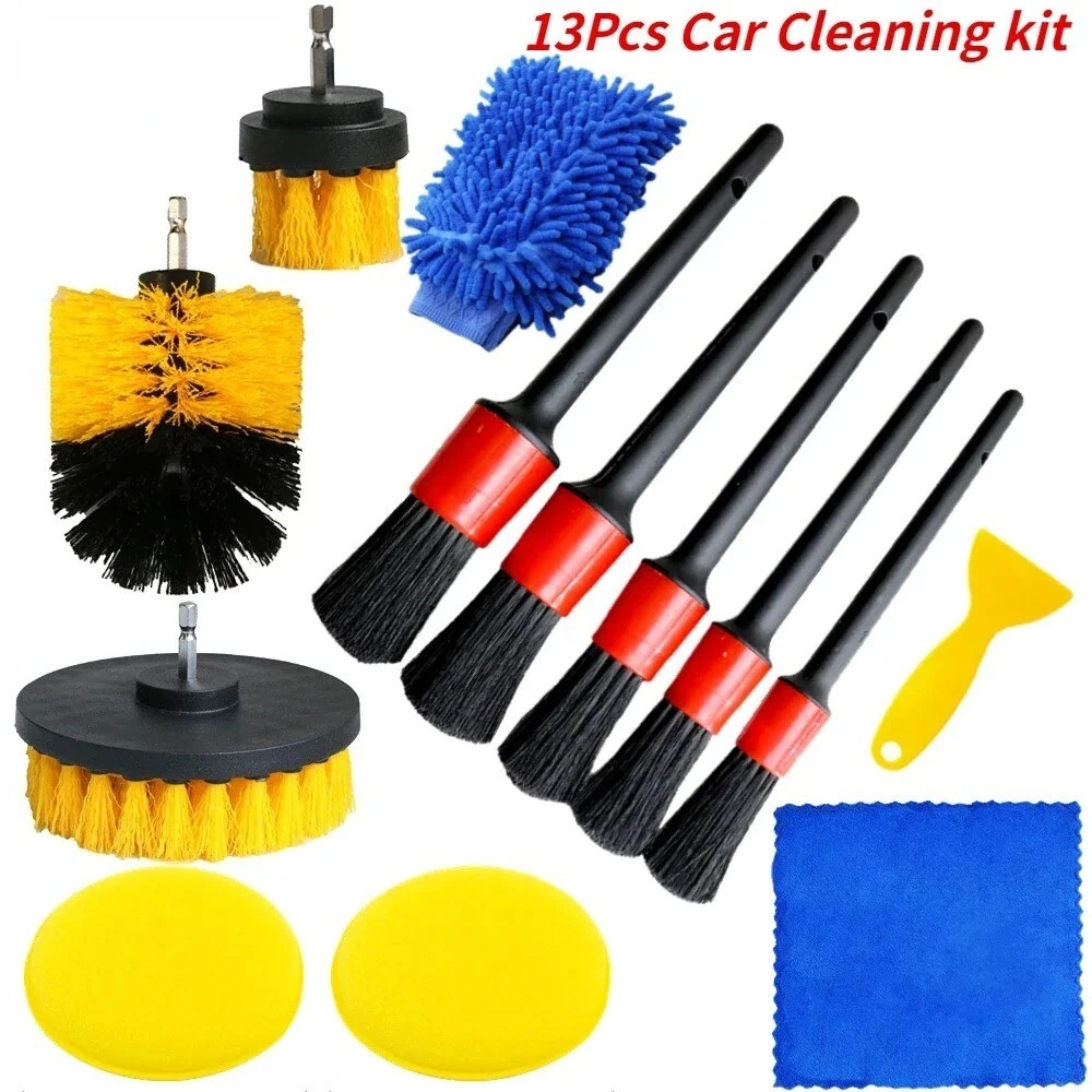Car Cleaning-Kit Scrubber Drill Detailing Brush Set Air Conditioner Vents Towel