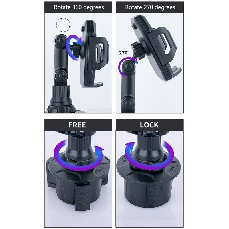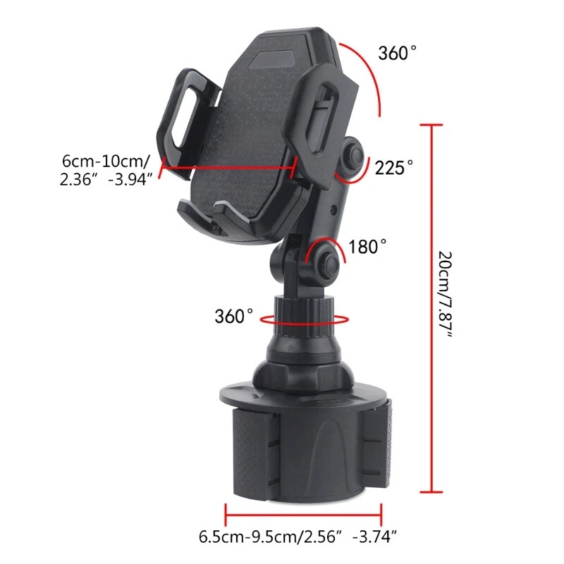 Car Cup Holder Easy Installation Car Phone Mount Moveable Drink Cup Base Description: Features: The holder grips your device tightly and prevents it falling and damage.suitable for 3.5 to 6.7 inch for smart phone Adjustable and fits firmly in the cup holder for car, truck or SUV,Base expands to fit any vehicle cup holder; no suction or adhesive required The 360-degree rotatable holder provides you with the best viewing enhancing your safe driving Suitable for i-Phone 11 12 Mas 8 7 Plus/6s, for S9+ Plus Note9 for for and more cellphones. Specification: ABS Type: Accessories Color: Black Base Length: 20cm Quantity: 1 Pc Package includes: 1 x Car Cup for Smart Phone Holder
