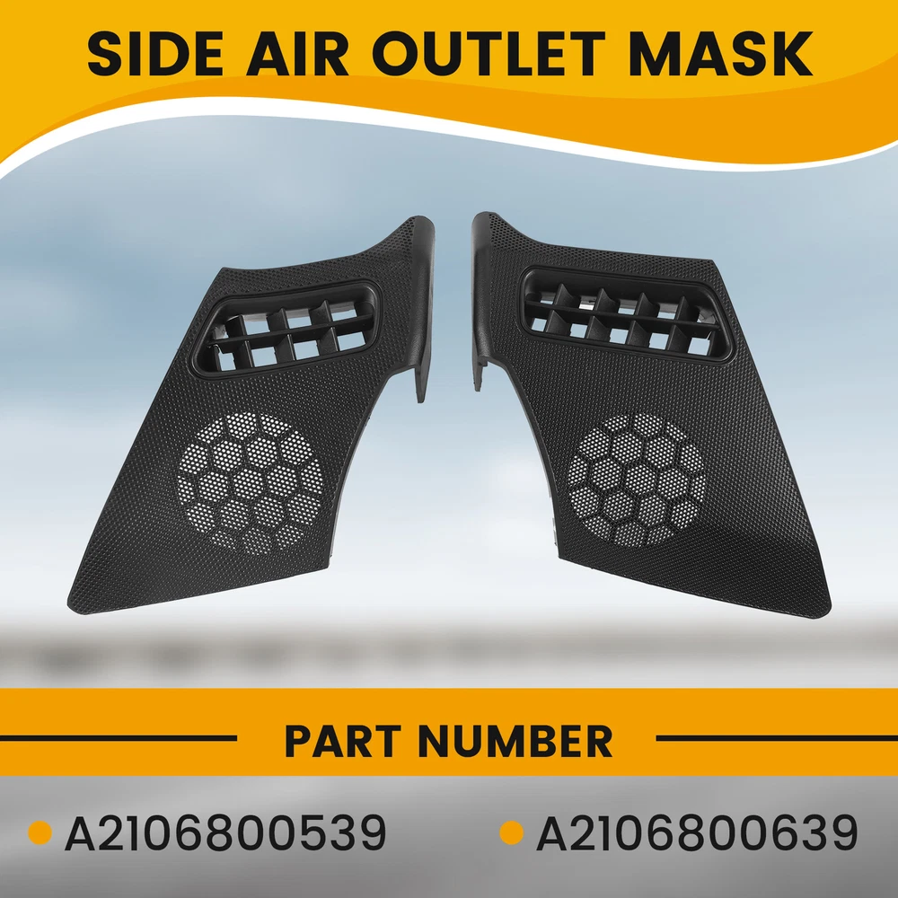 Car Dash Board R+L Side Air Vent Speaker Grill Cover for W2107571 , never been used. Easy to install and in use. Great quality and great fit. Direct Replacement Correct connector without cutting or splicing. quality control standards to build and test. Item Type:Dash Board Side Air Vent Speaker Grill Cover Part Number: A2106800539,A2106800639 Fitment: For W210 E-CLASS E320 E430 E55 1996-2002 colour:Black Material:ABS Package Contents: 2 x Speaker Grill Cover(L+R)