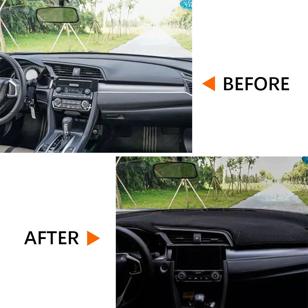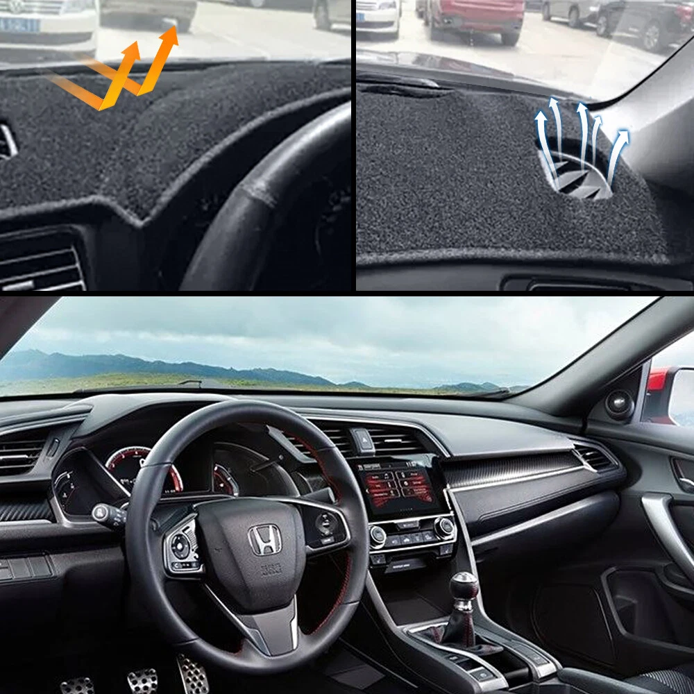 Car Dash Cover Mat Dashboard Non-slip Pad For 2016 2017 2018-2021 Honda Civic Fitment: Honda Civic 2016-2021 (ONLY FOR LEFT HAND DRIVE MODEL) ( Note: If you receive a product with wrinkles, you can use an iron to make it flat) Features: 【Custom Fit 】- This is a dash mat specially designed for Honda Civic 2016-2021 . No cutting, perfectly fitting dashboard cover. Please check the model carefully to avoid errors. 【Craftsmanship】- Laser cutting to fit your dashboard perfectly. According to the original car 1:1 patterning, the fit is high, keep your vents, sensors and trays open and fully functionals. 【Durable Material】- This is a dash mat is Made of High quality polyester fabric , soft to the touch and well-made. And there are anti-slip silicone particles at the bottom of the mat, which will not slide on the dashboardf. The double-sided adhesive tape is presented as a gift, which can be fixed as needed to make the Dashboard Cover more difficult to slide. 【Product Usage】- It can maintain consistent color and maximum colorfastness in the sun for a long time. It has a low weaving rate, can achieve a smooth, low glare appearance, and has the dashboard from getting cracks from the sun shining on it while driving, and reduce the heat coming off of our dashboard, thus keeping the interior cool and safe driving.You only need to place it on the dashboard cover, and the installation can be completed in a few seconds. 【 Protections 】- This dash cover protects the dash surface from ultraviolet rays that can cause dash boards cracking discoloration and warping. The thick dash mat also can block the dirt ,scratches and dust or cover blemishes and imperfections of old dashboards, improving the overall style of your interior. Cools dash 's temperature in summer and keep warmer in winter, ideal choice in extreme weather areas. Specifications: Type: Car Dashboard Cover Material: High quality Polyester Fabric Color: Black Placement on Vehicle : Dashboard Package Inchuded: 1x Dashboard cover Payment We can accept payment of Paypal only. Payment should be made within 7 days after purchasing. (No payment orders eBay system will automatically open unpaid dispute, and this is not good to your account.) Shipping Item will be shipped out within 48 hours upon receipt of your cleared payment. We can not ship on Sundays and other public holidays. International Buyers Please Note: 1, Import duties, taxes and charges are not included in the item price or shipping charges. These charges are the buyer's responsibility. 2, Please check with your countrys customs office to determine what these additional costs will be prior to bidding/buying. Please make sure your address in paypal is correct. we will only follow your address listed in the Paypal payment for the shipment. Combine shipment is not allowed. If you want to combine all the items together, you should still pay for all of the shipping, insurance and handling fee! Returns We offer you 30 days return. The buyer is responsible for return shipping including a result of customer error or wrong item bought: 1) If you received an incorrect, damaged, defective, or item not as described, contact us for a partial/full refund or replacement on our cost. 2) If you want to return the item, please contact us within 60 days after package received. Return products must also be in its original condition: including box, packaging and all other accessories. Feedback 1.We are appreciated your business and to improve our customer service and our commitment to quality. 2.We will leave a positive feedback immediately after payment is received. We appreciate a positive feedback as much as you do. 3.If for some reason there is any issue with the purchase, please contact us prior to leaving feedback, and we will be glad to work with you to have it resolved. Contact Us We do appreciate your purchase from our store. If you are satisfied with the item as well as our service, please kindly leave us a Positive Feedback to help develop our business. Thank you in advance. Our office hours are MONDAY - FRIDAY 9:00PM - 18:00PM PST , we do not answer any E-mails or eBay messages on weekend. All E-mail or eBay message take us around 24 hours to respond. Thanks a lot. Car Dash Cover Mat Dashboard Non-slip Pad For 2016 2017 2018-2021 Honda Civic Fitment: Honda Civic 2016-2021 (ONLY FOR LEFT HAND DRIVE MODEL) ( Note: If you receive a product with wrinkles, you can use an iron to make it flat) Features: 【Custom Fit 】- This is a dash mat specially designed for Honda Civic 2016-2021 . No cutting, perfectly fitting dashboard cover. Please check the model carefully to avoid errors. 【Craftsmanship】- Laser cutting to fit your dashboard perfectly. According to the original car 1:1 patterning, the fit is high, keep your vents, sensors and trays open and fully functionals. 【Durable Material】- This is a dash mat is Made of High quality polyester fabric , soft to the touch and well-made. And there are anti-slip silicone particles at the bottom of the mat, which will not slide on the dashboardf. The double-sided adhesive tape is presented as a gift, which can be fixed as needed to make the Dashboard Cover more difficult to slide. 【Product Usage】- It can maintain consistent color and maximum colorfastness in the sun for a long time. It has a low weaving rate, can achieve a smooth, low glare appearance, and has the dashboard from getting cracks from the sun shining on it while driving, and reduce the heat coming off of our dashboard, thus keeping the interior cool and safe driving.You only need to place it on the dashboard cover, and the installation can be completed in a few seconds. 【 Protections 】- This dash cover protects the dash surface from ultraviolet rays that can cause dash boards cracking discoloration and warping. The thick dash mat also can block the dirt ,scratches and dust or cover blemishes and imperfections of old dashboards, improving the overall style of your i
