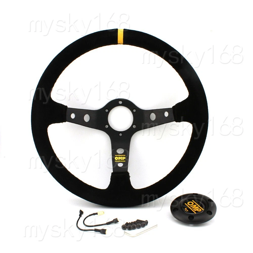 Material:Aluminum spoke with electroplating polishing+Ultra-fine Suede cover. Ideal for Rally/Drift/Race Wrapped with Suede Leather Comes with horn button and horn wire attachement. 340mm (about 14inch) Dish cone:90mm PCD:70MM*6 Colour : Black cover + spoke Fits most 6 bolt pattern boss kit (MOMO, Sparco, OMP, HKB etc). Package Includes: 1 x Steering Wheel,horn button,cord horn,screws Ultra-fine Suede cover,Skin friendly,Non-suffocating insulation. Fine texture, anti-slip wear. Electroplating polishing spoke, durable corrosion resistance. Noted: Steering wheel only, hub/boss kit is not included, thanks. A Steering Hub Adapter(Purchased seperately) is required for installation.
