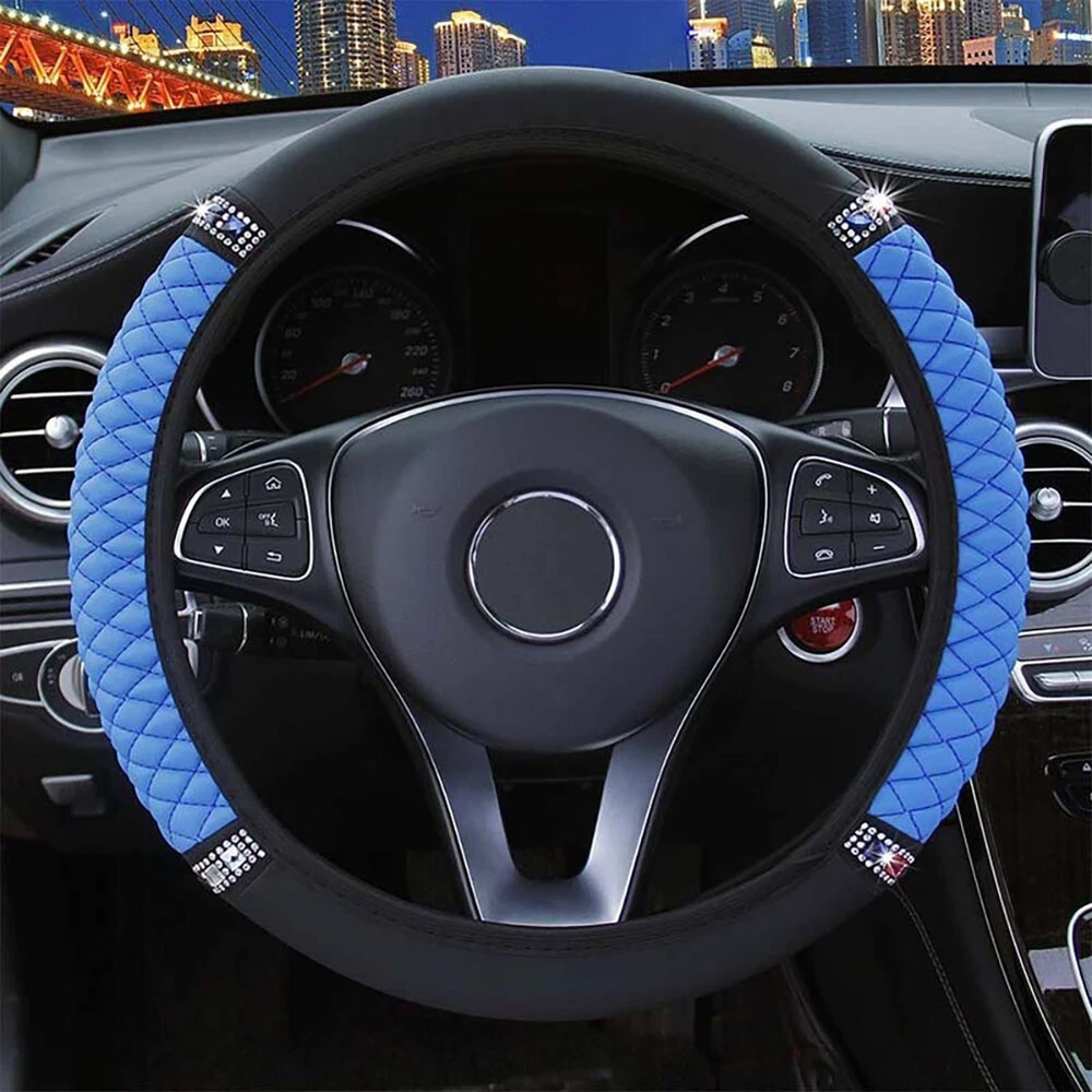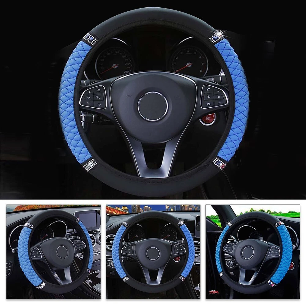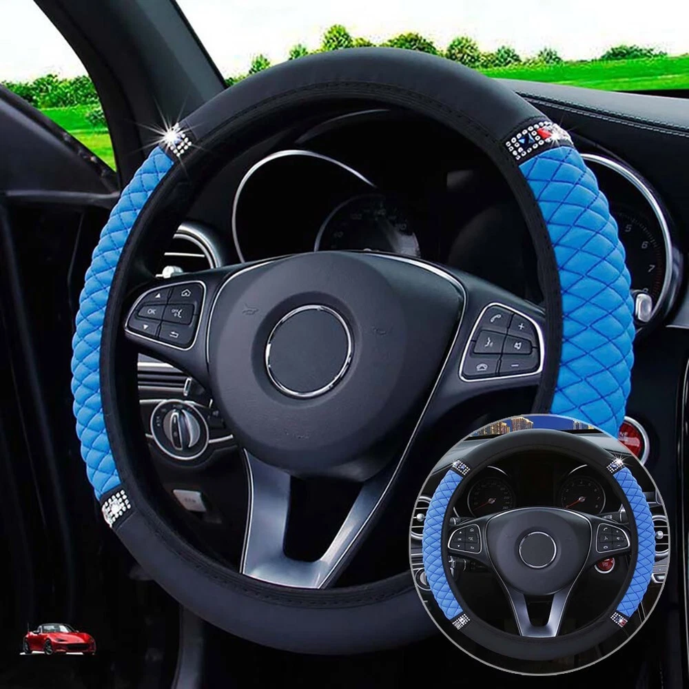 Car Diamond Steering Wheel Cover Auto Anti Slip Wheel Protector Leather 38-37CM DESCRIPTION Features: * brand new and high quality *Suitable for most models, for both round and D shape, fit for 37-38CM steering wheel diameter *High quality leather, fine workmanship *Elastic style, does not take much place, easy to store *Elegant look, adding a sense of fashion to the car interior * and easy to install *Regardless of the seasons , Specifications: *Material: leather *Color: Black blue (As Pictures Show) *Suitable for: for 38-37CM Steering Wheel *Condition: brand new *Suitable models: 98% of the models on the market (not suitable for trucks, buses, etc.) Package Contents: 1*Steering Wheel Cover POLICES Shipping Payment WARRANTY Orders processed within 24-48 hours of payment verification. We only ship to confirmed eBay Order addresses. Your Order address must match your Shipping address. Please kindly note that we don't provide combined shipping because the shipping fee is calculated by weight. Also, the each additional item means the exact same one, with the same color and size. Service transit time is provided by the carrier. It takes about 3-7 working days. If you have not received your shipment within 30 days from payment, please contact us. We will track the shipment and get back to you as soon as possible with a reply. Our goal is customer satisfaction! Payment must be completed within 5 days. If you have any problems about payment, please contact us via ebay message. We strive for 100% customer satisfaction! Positive Feedback is very important to us. If you have any questions, p lease feel free to contact us via "Ask seller a question" . We will reply your email within 24 working hours. On Jan 3, 2025 at 07:12:28 PST, seller added the following information: