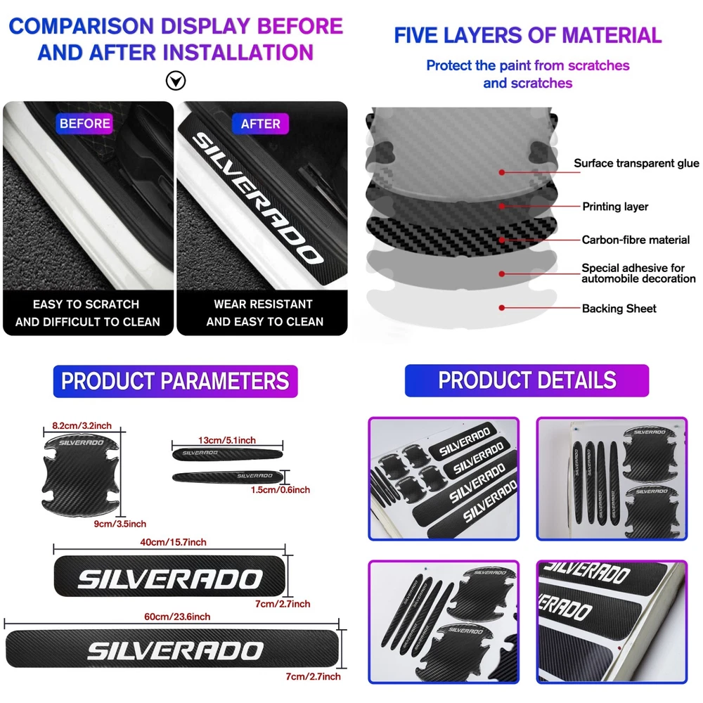 Car Door Sill Scuff Plate Cover Anti Scratch Stickers Protector For Silverado