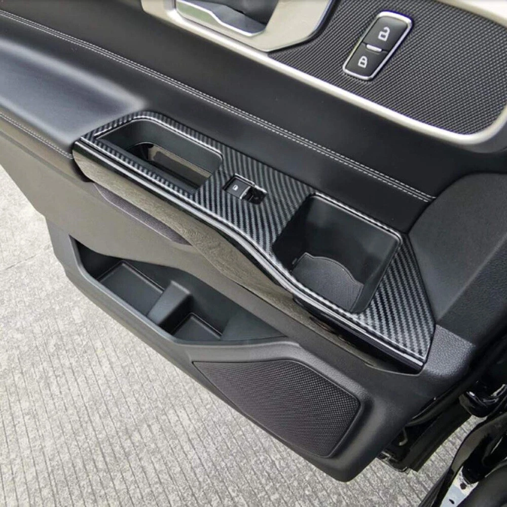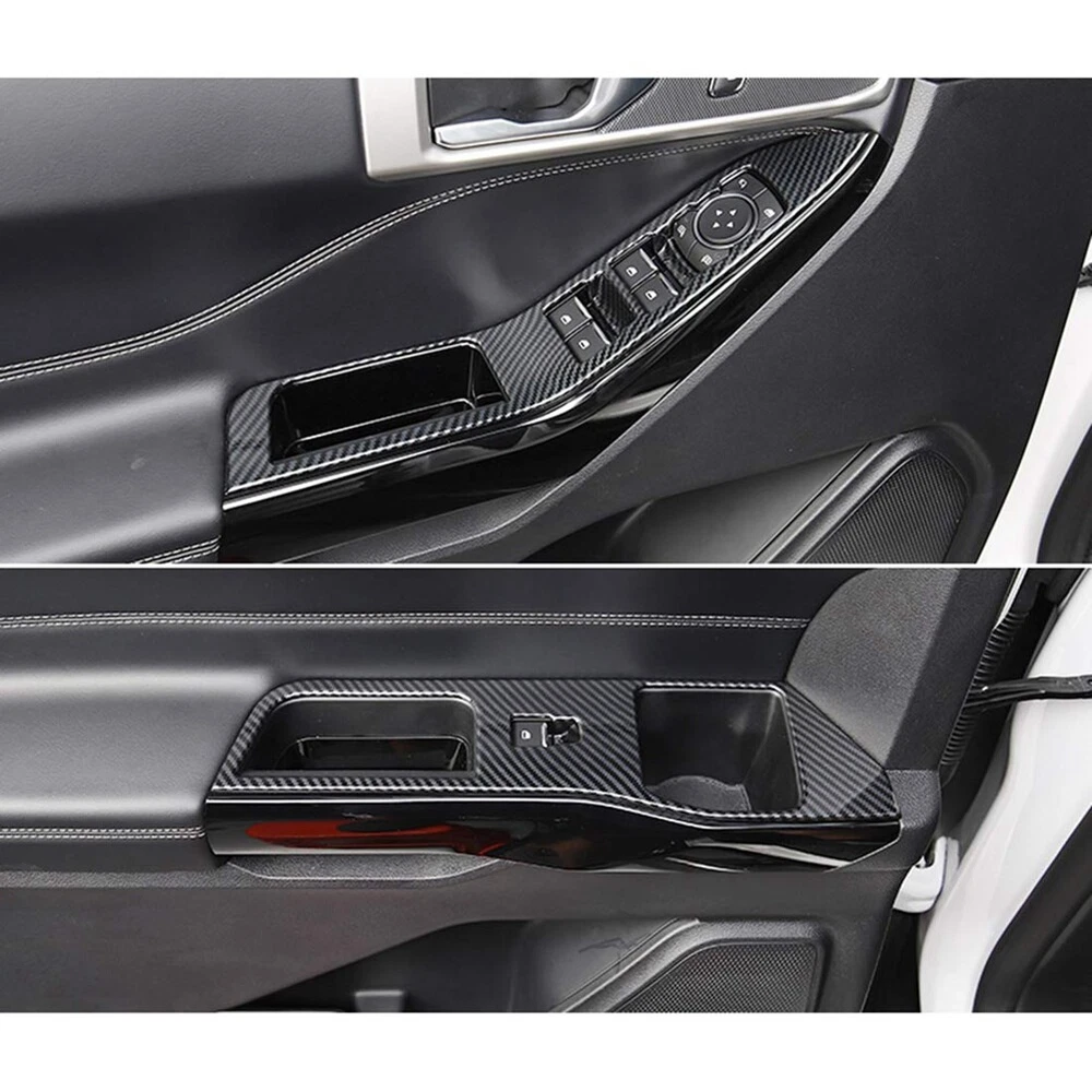 Car Door Window Lift Panel Cover Trim Carbon Fiber for Explorer 2020 20213282 [Fitment ]Fit for Explorer 2020 2021 2022 2023 [Material] ABS . After installation, you can enjoy the sportive feeling by the carbon fiber texture of Explorer interior [Design]The fine carbon fiber pattern adds a to the original car, improves the sports flavor of the whole car, and is full of motion [Installation]Direct stick-on the original trim without drill or cutting, quite easy installation. Come with the sticky tape. No hemming Color: carbon fiber pattern color Material: ABS Package Contents: 4x Window Lift Panel Cover