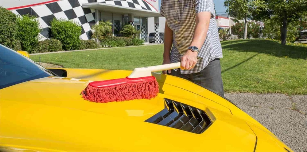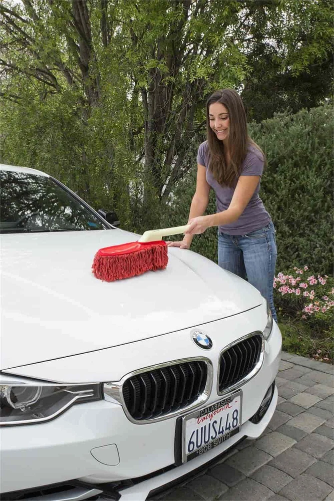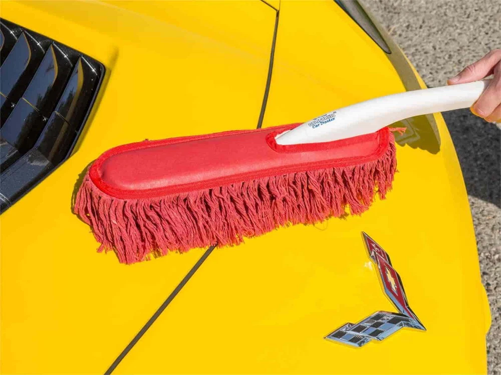 Remove particles such as pollen, dirt and lint from your vehicle's exterior with this Car Duster with Handle 26". It contains dense, high-quality 100 percent cotton strands that provide a quick yet thorough cleaning without the need for water or spray waxes. The car duster brush fibers come with permanent baked in paraffin wax that gently lifts away small particles from the finish. It won't scratch your paint or finish and decreases the number of washings you need to perform to keep your vehicle looking freshly washed. The Car Duster with Handle 26" is completely safe for all finishes, is compact, lightweight and easy to use. Simply shake out the dust prior to each use. 26" Handle Car Duster: car duster won't scratch finish 100% cotton strands Removes dust; high-quality fibers to hold dust Permanent baked-in wax lifts dust with one pass Eliminates the need to use water or spray waxes Safe and non-toxic Reduces the number of car washings to keep vehicle looking clean Length: 26" Care & Cleaning: The Original Car Duster Cleaning Instructions: Actually the Car Duster can go years without washing and in most cases works just as well as the first day. It is best to simply shake the duster out after use and on occasion blow the mop out with air. From most customer experience their dusters have lasted in the range of 15 years. If you do feel the need to wash your Car Duster, here are the steps: Wash the duster by hand, leaving the mop on the handle. Clean the duster in cool water mixed with a small amount of a mild detergent (i.e. ) Rinse clean with fresh, cool water. Let the duster air dry (this may take a couple of days)