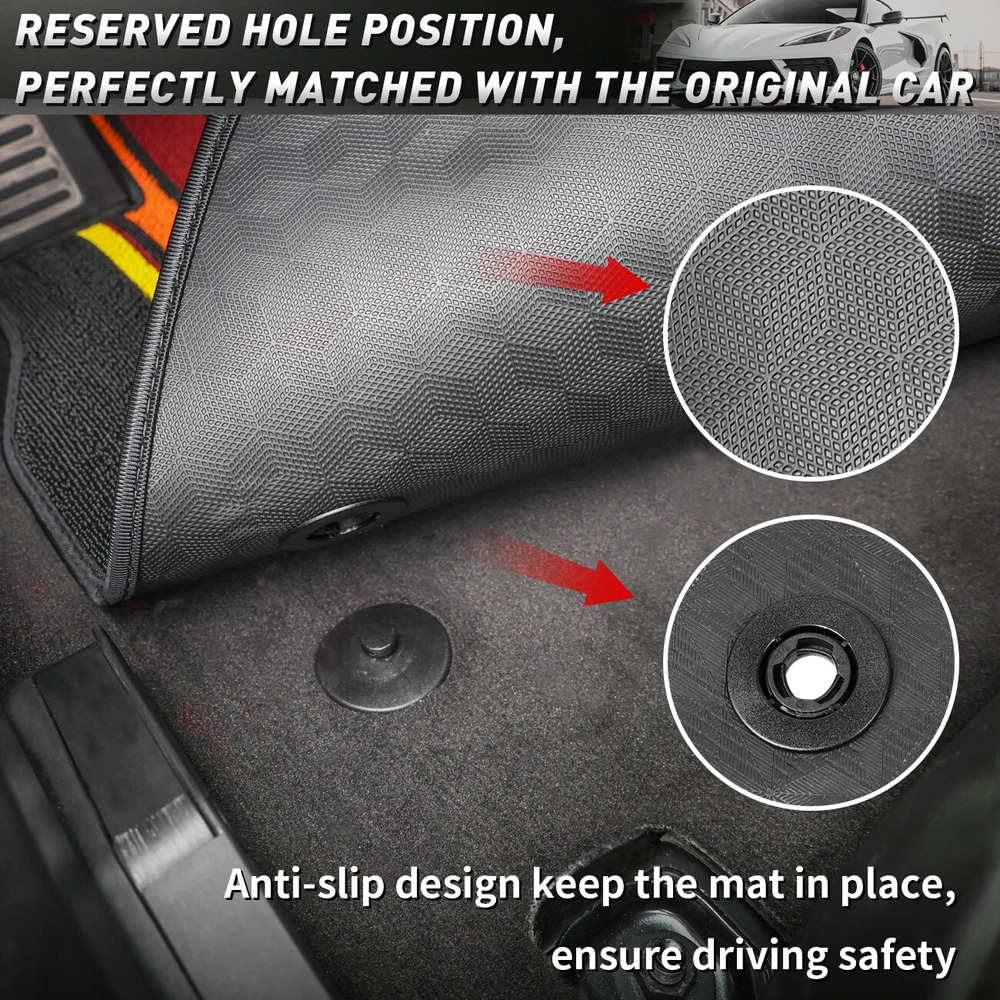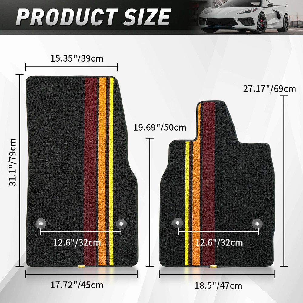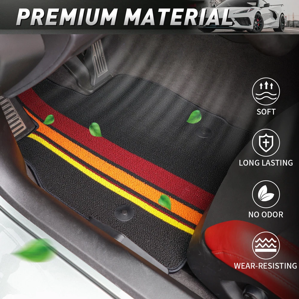 Car Floor Mats Floor Carpet Fit for Corvette C8 Z51 Z06 Stingray Coupe 2020-2024 Features 【Fitment】These floor pads have been specially designed and cut to fit for Corvette C8 Coupe 2020, 2021, 2022, 2023, 2024, and are easy to install. 【Material】The mat is meticulously crafted from high-strength polyester filament, featuring a sophisticated anti-slip texture on its underside to ensure a steadfast installation within your vehicle. The harmonious fusion of three striped colors not only accentuates the aesthetic allure of your car interior but also adds a captivating charm, transforming it into a visual delight. 【Function】Whether you're embarking on a starlit camping adventure, or exploring the rugged terrain off-road, these mats serve as a vigilant guardian, effectively shielding your car floor from the soil, sand, rainwater, snowflakes, and dust clinging to your shoe soles. 【Features】Cleaning these mats is a hassle-free experience – simply disassemble them and rinse with water to swiftly eliminate any accidental spills, liquids, debris, or stains. 【Installation】The carpet is easy to install and remove, perfectly matching the original car. Just replace it directly. No modifications are required. Specification Condition: New Colour: Black Material: High-Strength Polyester Filament Fitment For Corvette C8 Coupe 2020-2024 Package Included 2X Floor Mats Declaration ⭐ This item is not a licensed Honda/Yamaha/Suzuki/Polaris/Can Am/Kawasaki/Arctic Cat/Jeep/Kymco/John Deere Gator/Bobcat/Mercedes Benz/BMW/Porsche/Toyota/Dodge/Harley Davidson/ product . ⭐ We do not claim ownership and have no affiliation with above-mentioned brands, copyrights and trademarks belong to the respective owners. ⭐ Unless specifically identified as such, our use of third party trademarks does not indicate any relationship, sponsorship, or endorsement between us and above-mentioned brands. ⭐ Any references by us (or company name) (or the seller) to third party trademarks is to identify the corresponding third party's goods and shall be considered nominative fair use under the trademark law. Payment ⭐ We accept credit, debit,discover Visa and PayPal,among other locally accepted forms of payment. ⭐ Please pay as soon as possible after odering , as that we can ship your item to you sooner! ⭐ Refund will be issue back to the account which paid from,please be know that. Delivery details ⭐ We offer FREE shipping on all orders!And offer world wide Shipping . ⭐ We ship within Three business days of payment, usually sooner .(work off on weekend and Holidays). ⭐ Delivery is typically within 8-21 days,the delivery date varies by shipping destinations, and may take a little longer during holiday peak season or encounter force majeure. Returns Accepted ⭐ This product comes with 30-day returns or replacment . ⭐ If the item is be damaged, defective, or not as described in the listing, We will provide you with a replacement or a full refund. ⭐ Any product you return must be in the same condition you received it and in the original packaging. Please keep the receipt. Quality Assurance ⭐ If you are satisfied with our item,could you kindly give us 5 stars feedback?Thanks a lot. ⭐ If there are any problems when you received the package, please feel free to message us, we will definitely give you a satisfying solution , please don't leave neutral or negative feedback without any communication.Thank you for your cooperation! Contact US ⭐ We are manufactuer ,the warehouse was located in US/China ,DO NOT worry about the shipping time. ⭐ Customer satisfaction is very important to us. ⭐ If you meet any question,Please do not hesitate to contact us via eBay message,we will reply you ASAP. ⭐ Our Working Time: 8 pm - 5 am(From Monday to Saturday,Not working on statutory holidays) . QUALITY AUTO PARTS