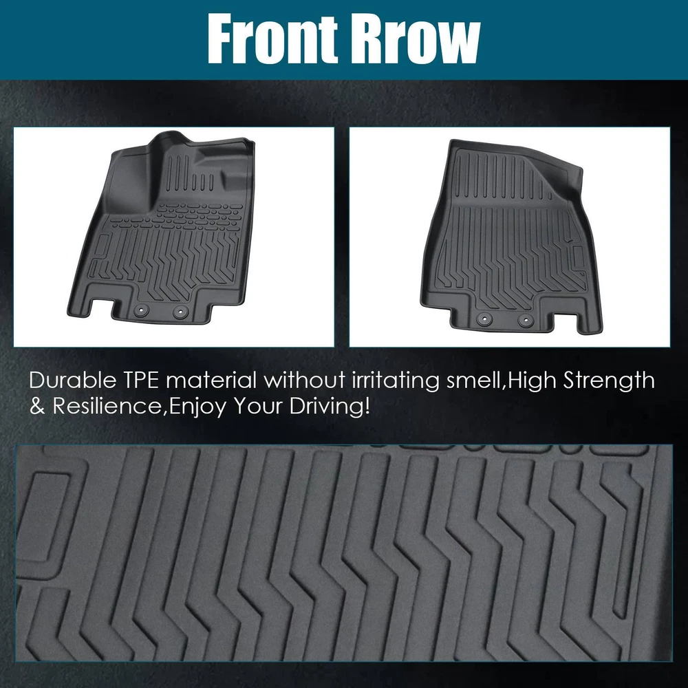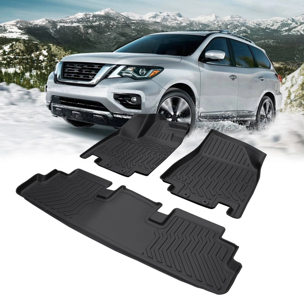 Specification Material: TPE Rubber Vehicle Service Type: Car Fit Type: Vehicle Specific Fit Position: Inside Condition: New Manufacturer Warranty: 1 Year Package Weight(lbs): 10.25 Package Dimensions(LengthxWidthxHeight:inch): 31.5*5.91*23.62 Item Weight(lbs): 6.75 Item Size(LengthxWidthxHeight:inch): 31.5*5.91*23.62 Unit: 3 Package Include: 2*Front Floor Mats,1*Rear Floor Mat Color: Black Fitment 2022-2023 Nissan Pathfinder Features & Benefits 1. All Weather Protection: By catching spills, stains, dirt, and debris keep your car and shoes clean. Keep out all the moisture. 2. Perfect Fit&No Slipping: The mats are tailored to fit your vehicle's exact dimensions. You can be sure that they will fit like a skin and provide maximum coverage. The 3D extended border makes you feel that the floor mat integrates the car during use. 3. Durable: Better temperature resistance than PVC. The mats made friendly environmentally contain no cadmium, lead, or any harmful PVC. The high-tensity TPE material is extremely wear-resistant but also remains flexible in extremely cold weather. 4. High Quality: Rubber Floor Liners made by High-tech 3D digital laser scanning to protect the front and back of your car footwell, which are not easy to wear, fade, waterproof and antifouling, can effectively protect the vehicle floor and extend the service life of the vehicle. 5. Easy Clean: Remove the floor mat from the car floor, wipe them with a wet towel, or rinse them directly, ensuring that there is no detergent left. let them hang or lay flat in a dry environment in a well-ventilated place. 6. Warranty: Buy with confidence! We offer a limited lifetime warranty on products damaged during delivery or that have a confirmed manufacturer defect. Please contact us immediately if you are not sure which model fitment. Note: Only sold in the USA (Excluding Hawaii, Alaska, Puerto Rico, Guam, Virgin Islands, American Samoa, Northern Mariana Islands, Palau, Federated States of Micronesia, Marshall Islands, AA, AE, AP). Warranty: If there's any problem, please feel free to contact us with your car's VIN # and the pictures or videos to show the problem within 30 days, we’ll try our best to solve it and make you satisfied. After using, the item’s warranty is 1 year, only for replacement and no refund. Hope you know.