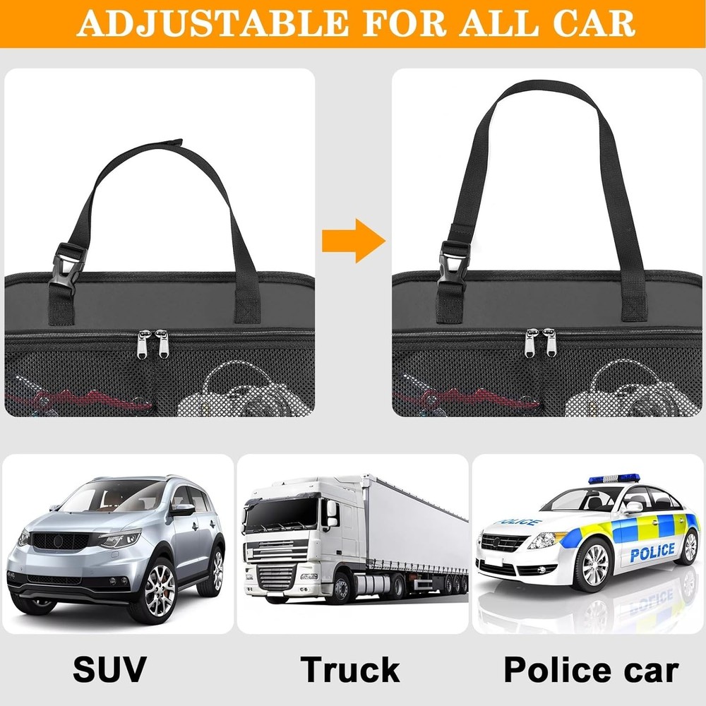 About this item Lot Of Car Seat Organizer And Storage: The car front seat organizer features a laptop compartment, a main pocket, four front pockets, two zipper mesh pockets, two bottle pockets, and three pen holders, providing extra room for work materials and keeping essential items close at hand. Even while driving, everything is within arm's reach. This organizer keeps your laptop and files neatly arranged in one place, eliminating paper and documents from sliding around in your vehicle. Ideal Organizer For Driver: The seat organizer not only offers powerful storage to keep your vehicle clean and tidy, but its cover design effectively protects your privacy and security. It’s perfect for those who frequently travel, including professionals and commuters. Easy To Install And Carry: This organizer is easy to install. Just fasten the buckles on the head of the car seat and around the seat, ensuring everything is within easy reach. The adjustable strap secures the organizer on the front seat or allows it to be carried on the shoulder. Once you arrive at your destination, you can quickly unlock the buckle and remove it from the vehicle. Easy To Swing To Back: Concerned that the backseat organizer will occupy your passenger seat? This organizer operates effectively in front of and behind any vehicle seat, easily swinging to the back when a passenger needs to sit down, resolving any space issues. It features heavy-duty buckles and double reinforced stitching for durability. Universal For All Cars: Suitable for all cars, SUVs, vans, and trucks, this organizer is an ideal solution for those who take short or long trips for business, making it effortless to transfer between work and various locations. Package Dimensions: 16.45"D x 11.85"W x 2.52"H