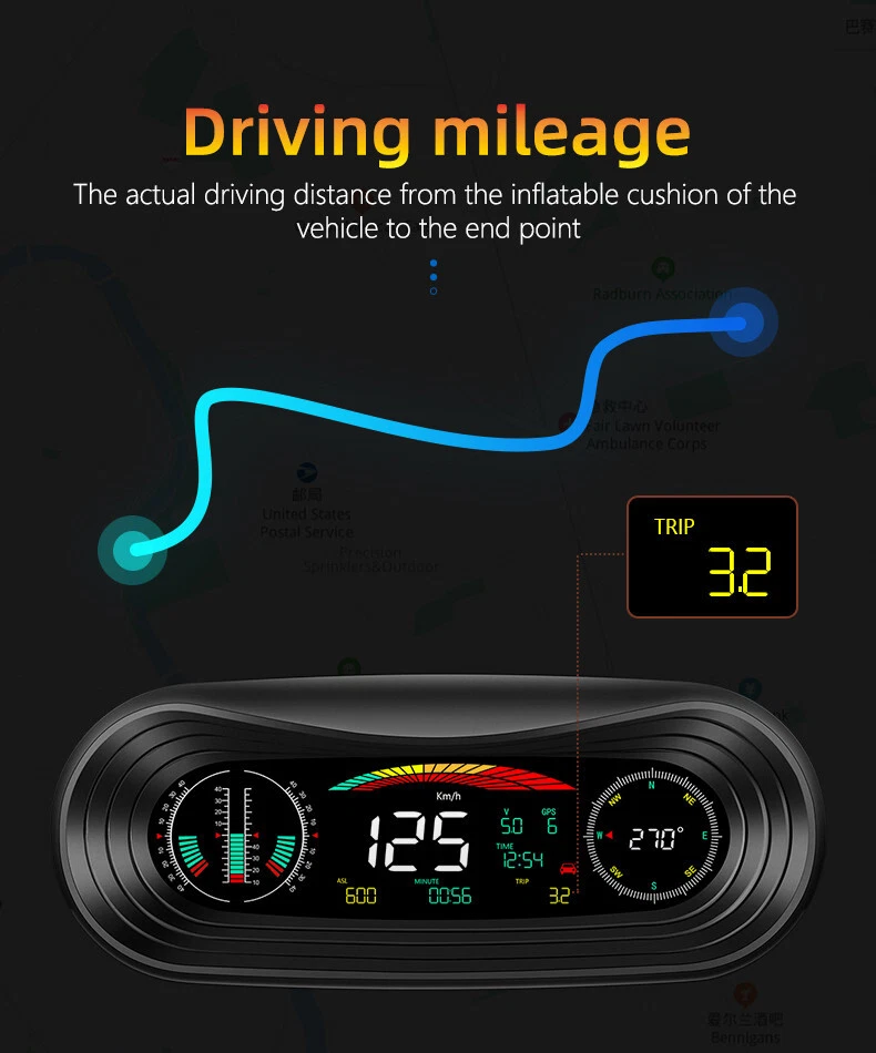 GPS Car HUD Speedometer with Overspeed Alarm & Fatigue Alert