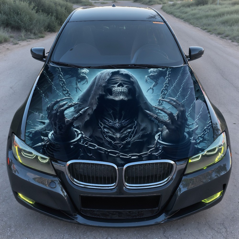 Car Hood Wrap Vinyl Decal Grim Reaper in Chains Graphic Custom Size Made to Fit