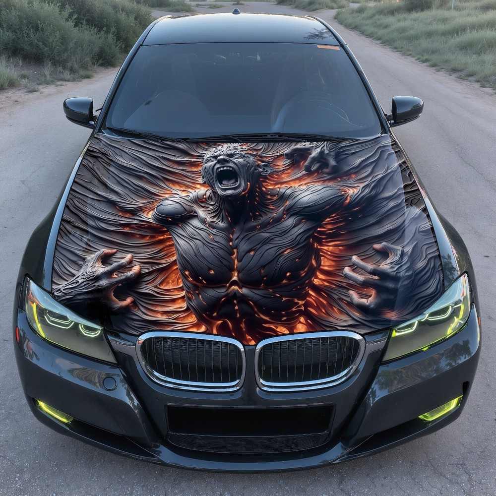 Car Hood Wrap Vinyl Decal Trapped Soul in Flames Graphic Custom Size Made to Fit