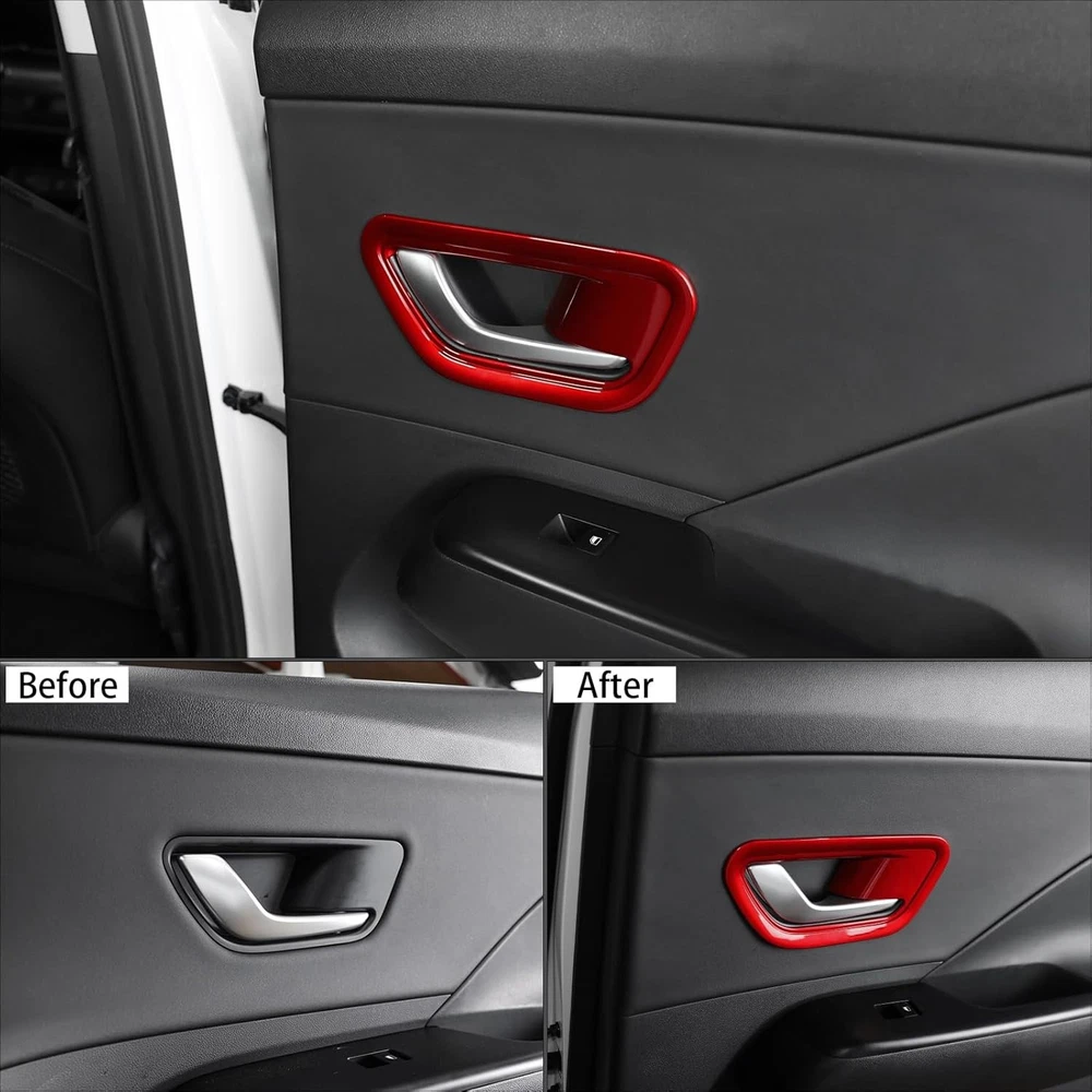 About this item 【Compatible Model】The Car Inner Door Handle Bowl Cover Trim is compatible with Hyundai Kona 2024 2025 SX2 Accessories - change the original ordinary look of the car and add unique charms. 【Material】The Inner Door Handle Bowl Cover is made of high-quality ABS plastic, featuring a carbon fiber grain surface and polish process for deformation protection and anti-corrosion. Non-toxic and odorless, it is durable and strong, providing a high-class and sporty decor style for your Hyundai Kona SX2 2024 2025 Accessories. 【Professional Design】The Inner Door Handle Bowl Cover is bright black with excellent workmanship, featuring three-layer processing: 1/Background black paint, 2/carbon fiber pattern paint, 3/Transparent UV finish, resulting in great luster and making it a stylish and exquisite decoration for your car. 【Easy to install】With double-sided tape on the back, it is easy to install without drilling, cutting, or damaging your car. Just peel the film and stick it on the installation location for convenient use.