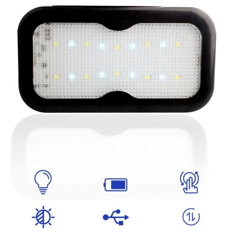 Car Interior Light Car Ceiling Reading Light Magnet Lamp Universal USB Charging and high Features: Universal for all car models; wide compatibility; Sensitive for touch control: short press to turn on/off; lit up instantly; easy to use; absorbing without damage; double sided adhesive tape fixing, not hurting car ceiling; Stable and firm installation to bumping; Built-in Lithium USB charging; Convenient and practical in daily life. Specifications: Duration:It can be used for about 240 minutes once filled Type : LED Roof Light Current : 0.1A 12V Power: 5.5W Luminous : 6000 Light Color: white + ice blue for Shell color:White/ Black/ for Grey Size:131*71*11mm Adaptation model: Bridge car Quantity: 1 Set Note: 1.Please allow 1-3cm error due to manual measurement. pls make sure you do not mind before you bid. 2.Due to the difference between different monitors, the picture may not reflect the actual color of the item. Thank you! Package includes:(No retail package) 1X Roof Light 1X disk 1X USB Data Wire