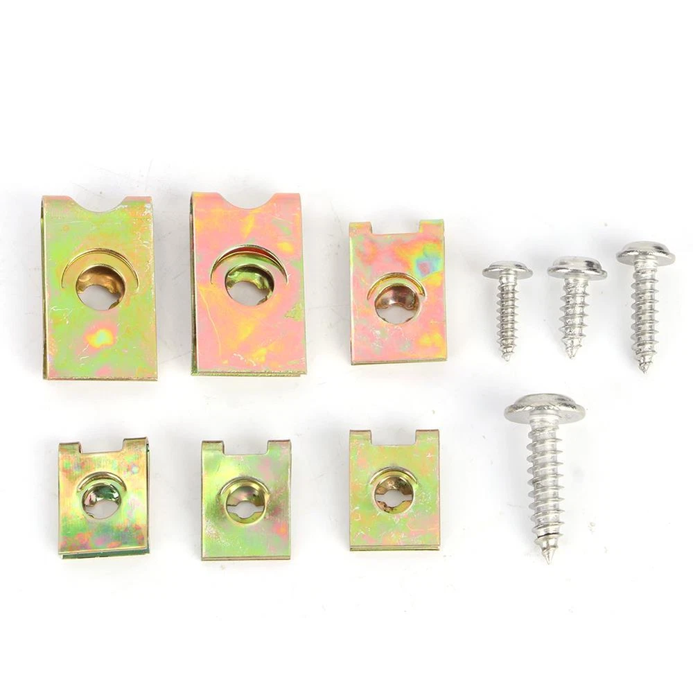 Condition: 100% Brand New Item Type: U-Clips Material: 65 Manganese Steel + 304 Stainless Steel Color: As picture shown Specification: No.6-25pcs M3x12-25pcs No.8-25pcs M4x12-25pcs No.10-25pcs M4x16-25pcs No.12-25pcs M5x20-25pcs Application: Suitable for motorcycles, automobiles, etc.