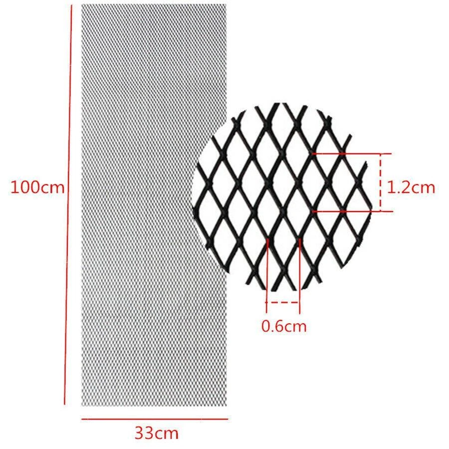 Feature: Made of high quality aluminium Soft but durable,easy to cut and install Prevent the destruction of the process of moving foreign objects on the vehicle interior parts. Universal Fit for any bumper, body kit, for fender, hood vent, vehicle opening, etc. Protect your intercooler, radiator, and engine bay from road rocks, debris, garbage, leaves, etc. Specification: Color:Black Material: Aluminium Size: 40"x13" / 100×33cm Mesh size: 12mm* 6mm Style: rhombus style Fit for:All kind of cars Note: 1.Please allow 1-3mm errors due to manual measurement. 2.Due to the difference between different monitors, the pictures may not reflect the actual color of the item. Package Included: 1x Grille Net eBay Cross Border Trade powered by ChannelEffect