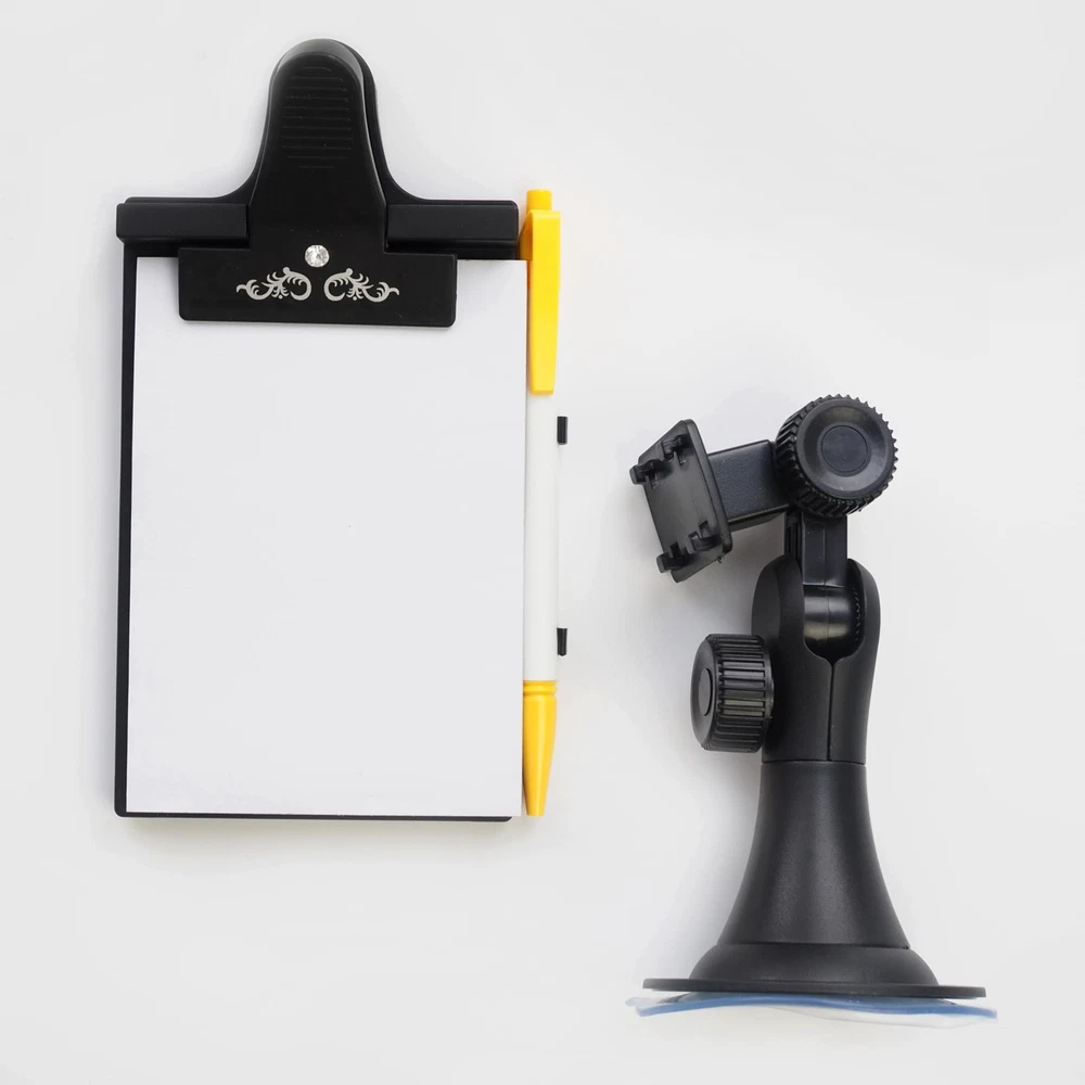 Car Note Pad/Memo Pad/Clip Board with Pen Holder | Universal Suction, Flexible ✅ Brings Utmost Convenience and Functionality: The car notepad with pen holder, notepad with clipboard and clipboard holder stand is a practical car accessory for all ages. This mountable clipboard notepad for cars enables you to efficiently jot down notes, write schedules, to-do list or your grocery list on your notepad while in your car. This pen and notebook stand clipboard can be very useful for you anywhere you go. Comes with 1 pad. ✅ Top-Quality: This writing pad for car has quality features since this car mount notepad is made from premium quality materials which maximizes its performance. The car clipboard memo pad holder is very Sturdy. This notepad with pen holder is Durable that will make it last for years. You can detach your car notebook holder easily so you can bring your notes everywhere with you. Plus, this car notepad can easily be mounted back to the holder when you are on the go again. ✅ Suited For Everyone: This clipboard with notepad is versatile and flexible because this notepad/pen holder for car is not just for people who own cars but for everyone. This car pen and memo pad is best for daily commuters, Busy Moms and Hurrying Dads, Cab Drivers and Passengers! This multifunctional pen holder and clipboard will let you write as you travel, making this script writing notebook, pen holder for clipboard and car clipboard holder all-in-one a must-have car notepad. ✅ Versatility: This notepad with pen holder provides a convenient way to write or take notes while you are traveling. This memo pad holder for car also gives you a Sturdy Surface to Write-on in and around your car. This pad holder for car has a Universal Suction Cup clip holder and Flexible Neck Mount to ensure that you can write easily while traveling. Furthermore, with the clipboard notepad holder's flexible suction cup, the pad clipboard stays in position even when driving on bumpy roads. ✅ Good Option For Gifts: This memo pad holder in the car and pen with pad holders from can be a good gift idea for your friends, workers, boss and family members. This car notebook and clipboard can be an ideal clipboard for students to write their school notes on, a useful car notepad holder for your hardworking husband or just simple gifts for car travelers. They will be pleased of your thoughtfulness when they receive this clipboard with notepad and pen and memo pad holder gift. Do you want a top-rated, multifunctional, handy and sturdy pen and pad holder, writing board with clip, pads for cars with quality board suction cup? Then this car notepad is good for you! Multi-functional These car dashboard accessories notes and clipboard holder for car give you the most convenient way to jot information on the go. Plus, car memo pad with pen is useful especially when you are traveling. The good thing is, you can multitask and write car notes inside your car with this notepad holder with pen. This car memo pad is not just for car use but this car memo pad can also be used as writing board in the office, as notebook pad clipboard in school and a notepad / clipboard for home use. This notepad and clipboard, memo pen and auto clipboard is best for your day to day activities too, for example to write down addresses and telephone numbers when you are inside your car. Sturdy Features This car clipboard's auto suction notepad easily mounts to any clean window surfaces in your car, truck or RV. This car notepad's universal suction and flexible neck mount provides a good and sturdy surface to write on even when traveling on bumpy roads. This memo notepad holder is manufactured from quality materials to make it last longer and this clipboard for car comes with a pen and a holder to make your life on the road easier with 100% satisfaction rate. Premium Quality This clipboards with note pad and pen holder clip notebook from is very flexible. Since this notebook holder and writing pad holder for vehicle can be bent easily and has good adjustable features, this car notepad holder and dashboards for car makes it a lot easier for you to write at any angle. Never settle for anything less because this memo notebook with pen and car notebook holder is the best available in the market, rest assured that you are purchasing a superior quality car mount note holder and car notebook from ! Shipping We offer FREE shipping on all orders! We ship within Three business days of payment, usually sooner. We use a selection of shipping services such as UPS, FedEx, USPS etc. We only ship to the lower 48 states, no APO/FPO addresses or PO Boxes allowed. Local pickups and combined shipping options are not provided at this time. Return You can return a product for up to 30 days from the date you purchased it. Any product you return must be in the same condition you received it and in the original packaging. Please keep the receipt. Payment We accept payment by any of the following methods: PayPal Please pay as soon as possible after winning an auction, as that will allow us to post your item to you sooner! Feedback Customer satisfaction is very important to us. If you have any problem with your order, please contact us and we will do our best to make you satisfied. Contact Us If you have any queries, please contact us via ebay. We usually respond within 24 hours on weekdays. Please visit our eBay store to check out other items for sale! Thank you for shopping at our store.