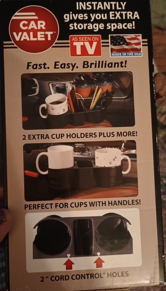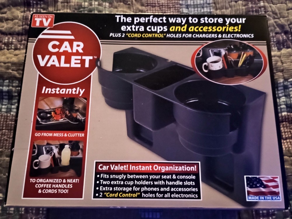 The Car Valet is a black plastic insert designed to organize your car with ease. This durable car valet can be easily installed between the seat and console of your vehicle. With its easy installation and compact design, this car valet is perfect for keeping your car neat and tidy while on the go. Designed in the United States, this one-piece storage solution is a convenient addition to any car or truck for keeping small items like keys, phone, and change in one place.