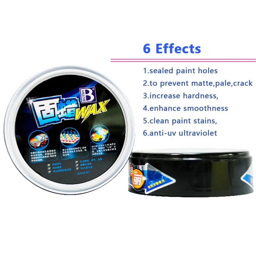 Car Wax Polishing Paste Wax Scratch Repair Agent Paint Car Crystal Hard Wax Paint Care Waterproof Coating Wax cera automotiva 【 Name 】: solid wax 【 Color 】as shown 【 Size 】: 12 * 9cm 【 Weight 】: 300g 【 Packing 】: iron canned 【 Features 】: professional infiltration formula, effectively remove the paint stains and mild oxide with the main, safe decontamination, do not hurt the paint to restore the original luster paint to provide continuous protection. 【 Instructions 】: 1. Clean the body, corners sewn with a gun to dry the water; 2. Apply the wax evenly to the surface of the paint; wait 10 minutes; 3. Then wipe the wax carefully with a dry towel; 4. Use a small toothbrush to clean the residual wax inside the corners of the corners; need tools and products: This product, air guns, small sponge ﹑ wet towel ﹑ dry towel ﹑ small toothbrush; construction time takes about 40 minutes. 【 Precautions 】: 1, should not be strong in the sun or high temperature and dust flying operations. Body is also fever when not operating. 2, dry wax layer to wipe clean in time 3, not for resin bumper, rubber and glass products. 4, away from children to avoid touch. Store in a cool dry and ventilated place.