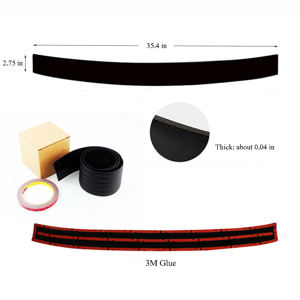 Feature: High performance ,racing style. No special tool, no drilling or screws required. Direct fit. Easy installation with double side Automotive tape at the back of covers for a strong and secure bond. Flexible enough to conform to different types of bumper/car body. Protect your car from scratches and and add style to your vehicle. Groove design surface matte effect with non-slip function Specification: Colour: Black Size: length 90cm/ width 8cm Material: PVC rubber Process: Extrusion Hardness: 50-90 Shore hardness Size: Various shapes, customizable Uses: Protection Collision Protection Color: Black PVC sealing strip performance characteristics: 1. Good insulation, a certain degree of flame retardancy, small compression deformation, strong elasticity; 2. The surface is flat, 3. Alkali-resistant, anti-aging, non-toxic; 4. A good surface is not sticky; 5. Adopt 100% high-quality rubber raw materials and undergo rigorous testing to meet environmental protection requirement Specifications: Often move things to the car after the car, do not be careful to scratch the car,leaving a scar. This time, we need to put on the protection of the trunk. To prevent damage to the trunk, which left scars. Can also prevent the fall of goods. Package Included: 1* scratch bar