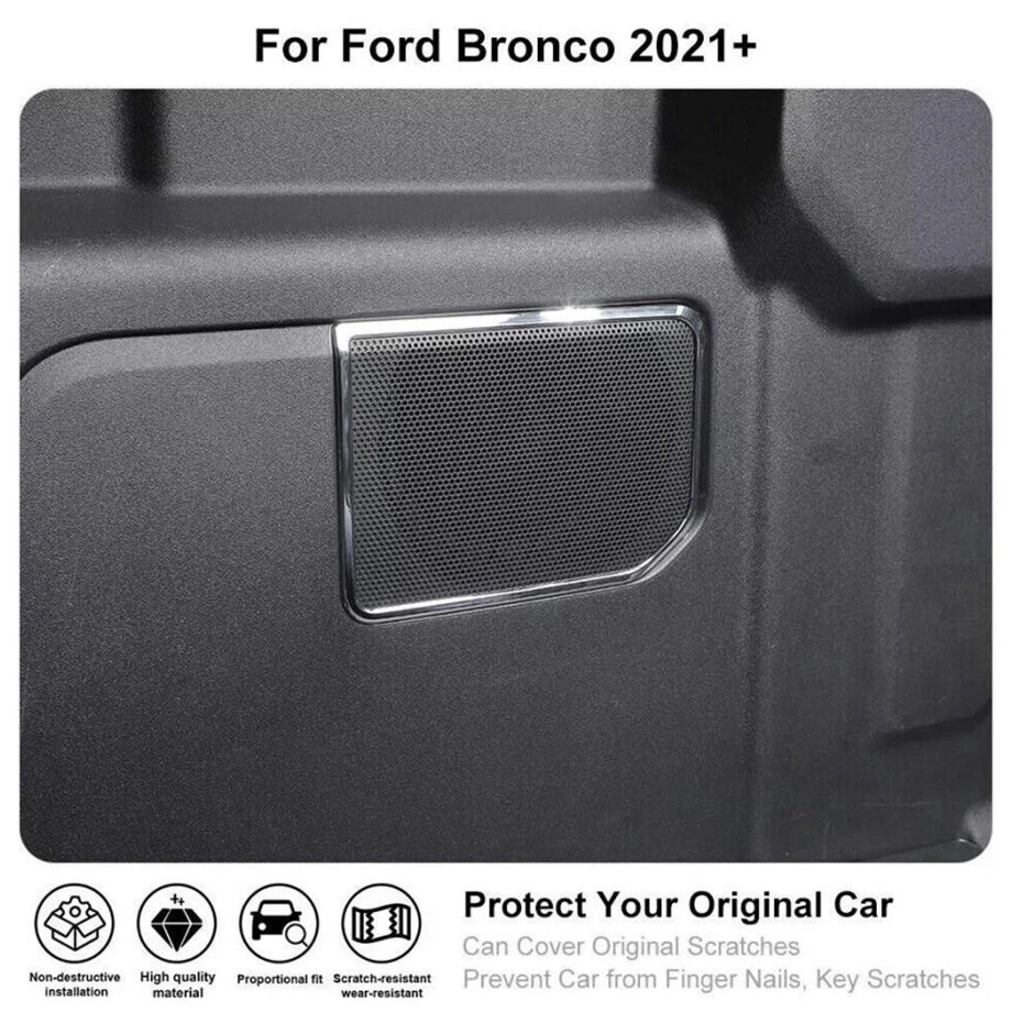 Fitment: Fit For Ford Bronco 2021 2022 2023 2024 "Please note, pay attention to Figure 2 before buying to make sure it fits your car model" Feature: Condition:100% Brand new Material: High Quality ABS Plastic Color: Chrome Package including:1PCS/Set Made in a ISO9001 Factory,good quality and have been exported all over the world Easy installation.3M automotive adhesive tape is attached. (Sold as seen, please ensure suitability carefully before purchase) INSTRUCTION MANUAL IS NOT INCLUDED Car Rear Trunk Speaker Audio Cover Trim For Ford Bronco 21-24 Accessories Chrome Fitment: Fit For Ford Bronco 2021 2022 2023 2024 "Please note, pay attention to Figure 2 before buying to make sure it fits your car model" Feature: Condition:100% Brand new Material: High Quality ABS Plastic Color: Chrome Package including:1PCS/Set Made in a ISO9001 Factory,good quality and have been exported all over the world Easy installation.3M automotive adhesive tape is attached. (Sold as seen, please ensure suitability carefully before purchase) INSTRUCTION MANUAL IS NOT INCLUDED Installation method: Step1: please clean the place with 50% alcohol to make sure no dust. Step2: remove the 3m glue in back; Step3 : heat the 3m glue by hot air gun;(A tip for putting on with supplied 3m tape is to warm the handles and the covers this makes the glue on the tape more sticky and they will stay on for ever!) Step 4: install the products in the right place ,Don't wash your car within 48hours. Customer Service If you cannot find the answers to your questions in this listing, please contact us , we will reply u ASAP,we will try our best to pleasure to serve u ! we hope have more happy and longtime shopping experience with u ! Shipping We will ship your order within 120 hours after receiving your verified payment (Excluding Weekends and Public Holidays) ! If u need delivery now , pls inform us , we will delivery it ASAP! shipping Shipping and handing Payment Refunds and returns About us shipping Country Approx / Delivery time United States : 8-25 working days United Kingdom / Australia / Canada : 20-35 working days Brazil / South America : may take up to 5-8 weeks due to strict Custom Inspection Italy / France / Spain / Germany/Eastern Europe : may take up to 6-8 weeks due to strict Custom Inspection Shipping and handing Item will be shipped within 24 -48 hours after full payment is received. · We ship worldwide with flat rate China Post , and other standard international shipping. this international order may take a longer time to arrive, Normally the shippment to worldwide is used to take 8 to 25 business days, exclude Weekend. Payment We accept PayPal only. Payment must be received in 7 business days of auction closing. Any special request cannot be accepted after 24 hours of payment, because most of orders will be processed instantly and same day dispatched. Refunds and returns Please contact us before leaving Netural or Negative feedback if you are not satisfied our service or products. Good communication is helpful for both of us to resolve any problems and issues. We are promising to try our best to provide the best service and 100% satisfaction for valuable buyer like you · All of the items are new. If it is not in new conditions, refund is offered. Otherwise, replacement can be offered for defective product. We will exchange or give the seller credit to buyer. · Please email us for all returns, and exchange shipping and handling charges are non-refundable. · Customers are responsible for return shippment fee except for wrong shipment or defective products. About us If you have any questions, please feel free to email our service specialists 24 Hours a Day, 7 Days a Week, and we will reply you ASAP. If no response within 24 Hours, please check the spam of mail box or kindly re-send it to us. We greatly appreciate your POSITIVE feedback. Please do NOT leave negative or neutral feedback without any contact. If you haven't received item in 30 days, please contact us and we will arrange refund. Advantage Will Never fade or rust Country/Region of Manufacture China Items Automotive > Exterior Accessories Approve Made in an ISO 9001 facility to ensure good quality Color Chrome Manufacturer Part Number Does Not Apply Placement on Vehicle Interior, Rear, Right Brand Unbranded Fitment Type Paste covering decorations Manufacturer Warranty 1 Year External Testing Certification ISO9001(ISO9001) Compatible with Fit For Ford Bronco 2021 - 2024 Material High quality ABS plastic Features Beautiful & Scratch Resistant Finish Polished Chrome Type Hood Package include 1PIECES/SET
