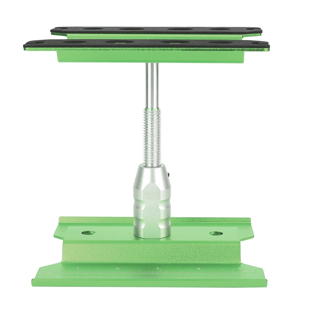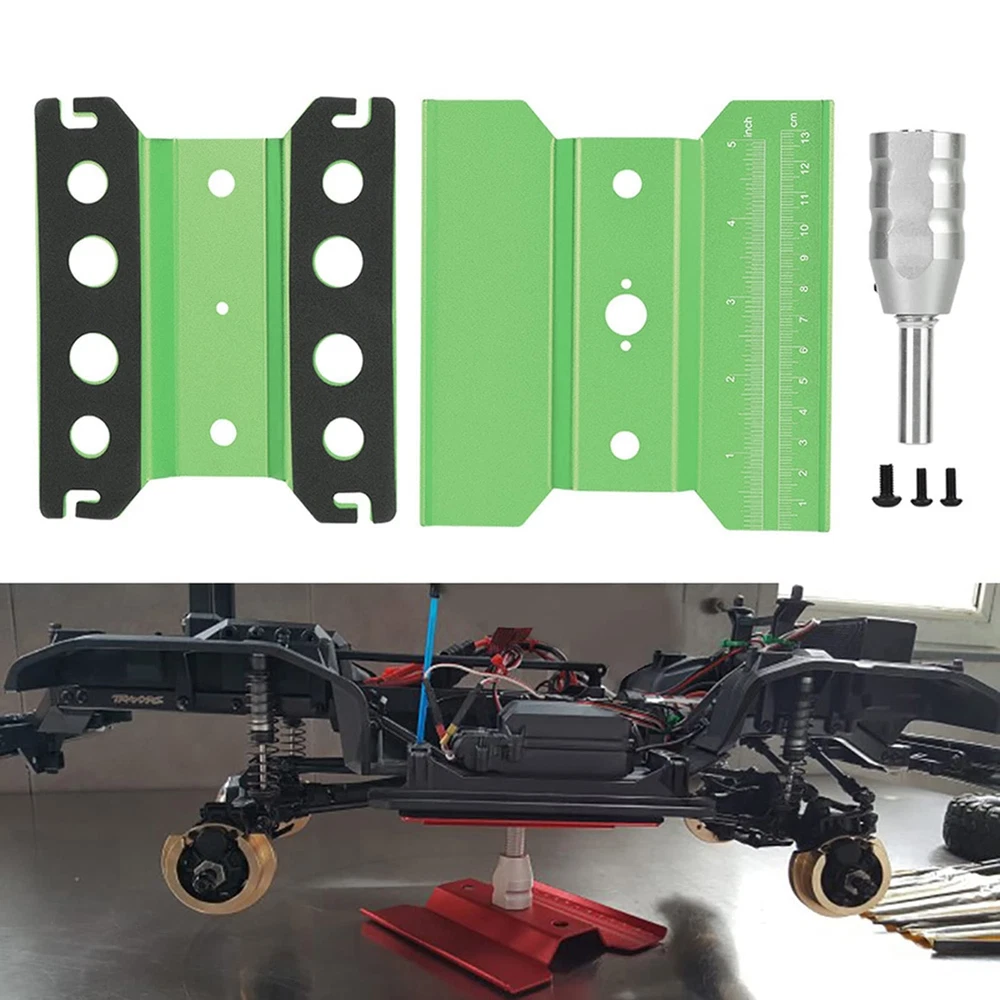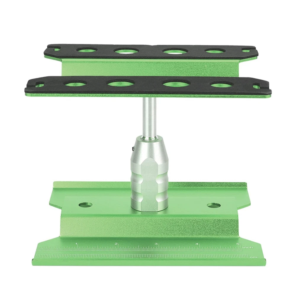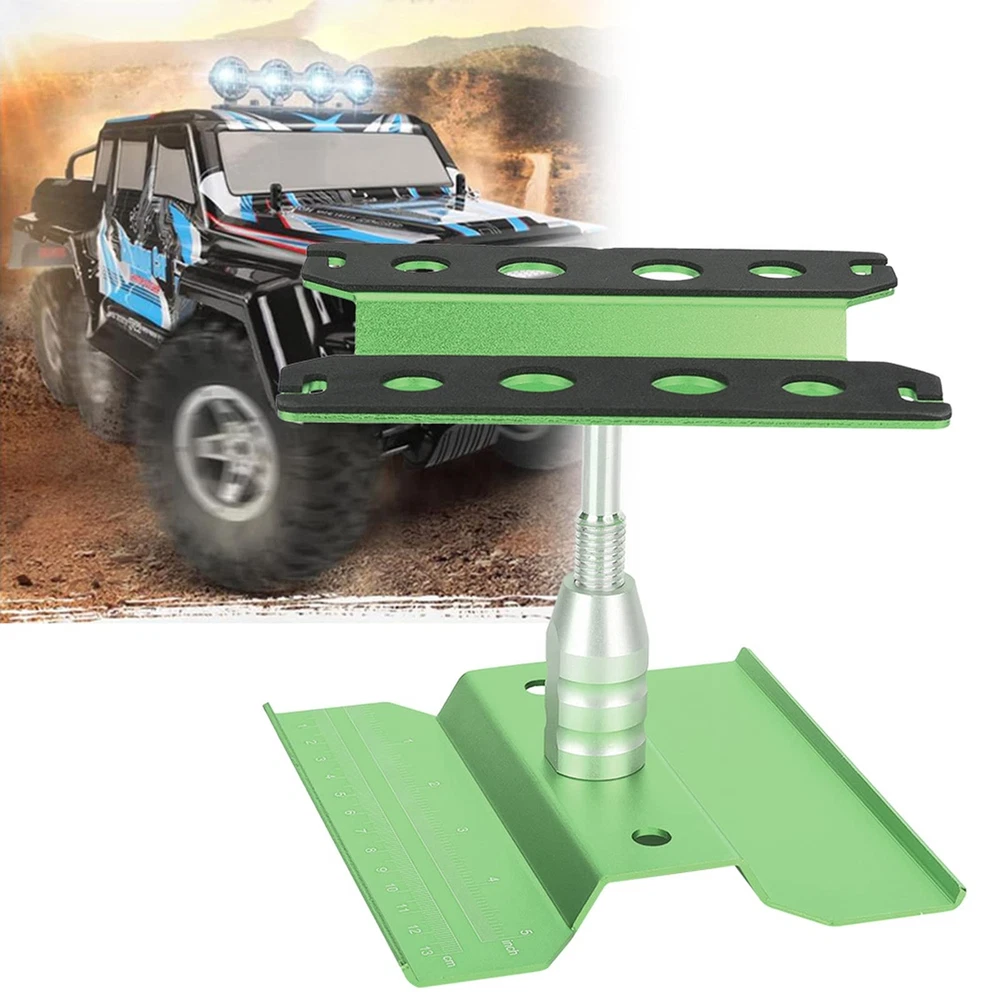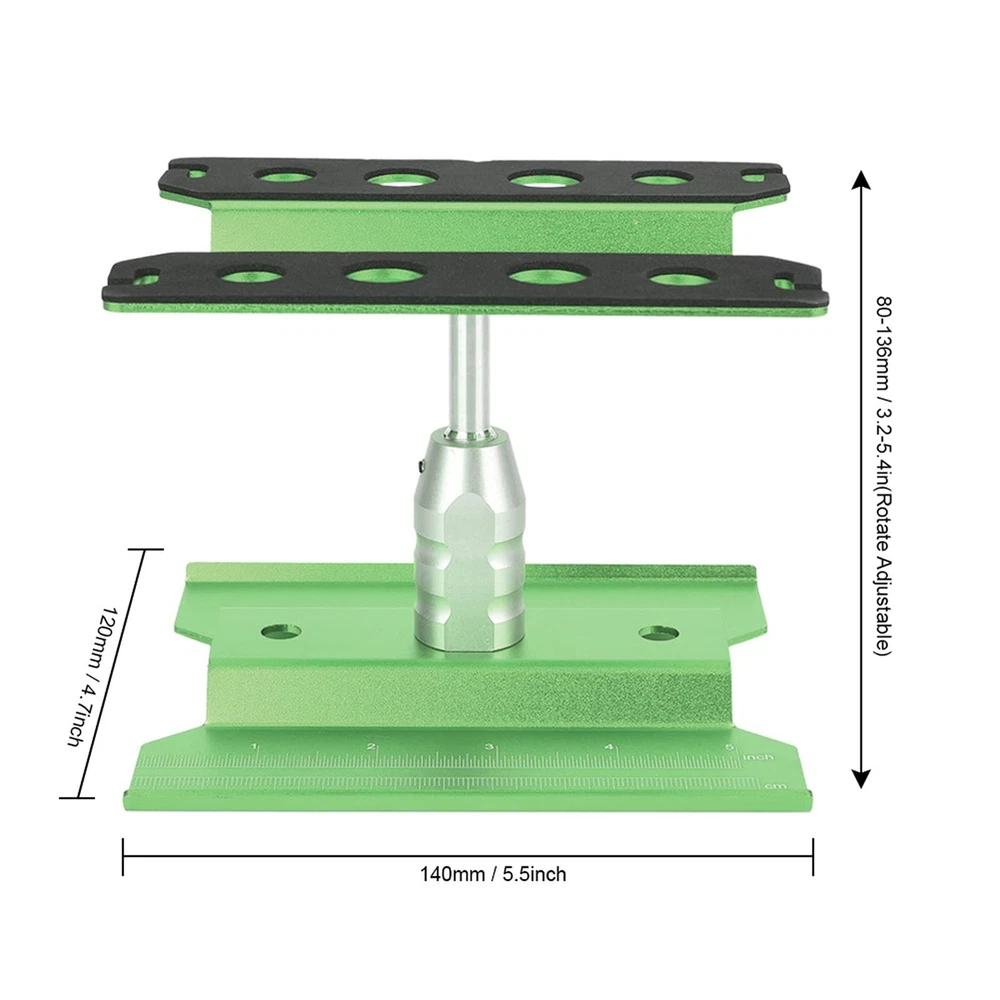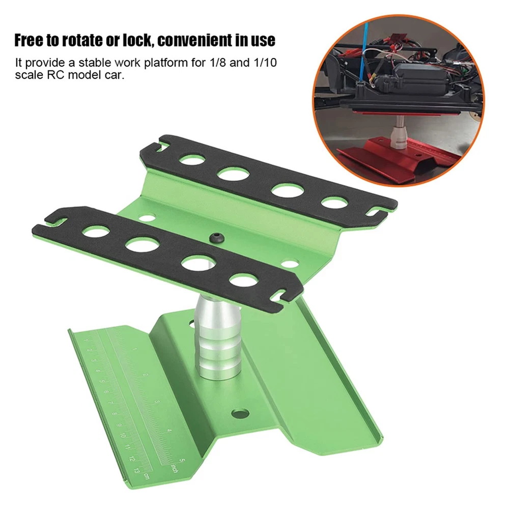 Features: 1. It provide a stable work platform for 1/8 and 1/10 scale RC model car. 2. The height is adjustable from 80-136mm / 3.2-5.4in. 3. Free to rotate or lock, convenient in use. 4. The formwork rubber is embedded in the upper plate clamp base, durable without peel off problem. 5. Chassis with scale, you can measure the length of screws. 6. Made of high quality aluminum alloy material, which is solid and durable. Specification: Item Type: RC Accessory Material: Aluminium Alloy Optional Color: Green, Blue, Black, Titanium Length: Approx. 140mm / 5.5inch Width: Approx. 120mm / 4.7in Height: Approx. 80-136mm / 3.2-5.4in(Rotate Adjustable) Package List: 1 x Base 1 x Upper Holder 1 x Support 3 x Screw Note: Please note that the new type and old type of this product will be sent randomly, And make sure you will not mind before ordering. STRONG PROFESSIONALISM: Our car repair station can provide a stable working platform for 1/8 and 1/10 scale remote control model cars to meet your professional needs. ADJUSTABLE HEIGHT: The height of our car work stand can be adjusted between 80-136 mm/3.2-5.4 inches, which can bring you a great experience. EASY TO USE: This model car repair station is free to rotate or lock, which is very convenient to use. Even if you are a novice with not very strong hands-on ability, you can complete the task excellently. ACCURATE MEASUREMENT: This case has a scale, you can measure the length of the screw, once you have our RC rotation repair station, you will like very much. GOOD DURABILITY: The 1/10 car repair station is made of high-quality aluminum alloy material, and the template glue is embedded in the upper plate clamp seat, which is durable and has no peeling problem.