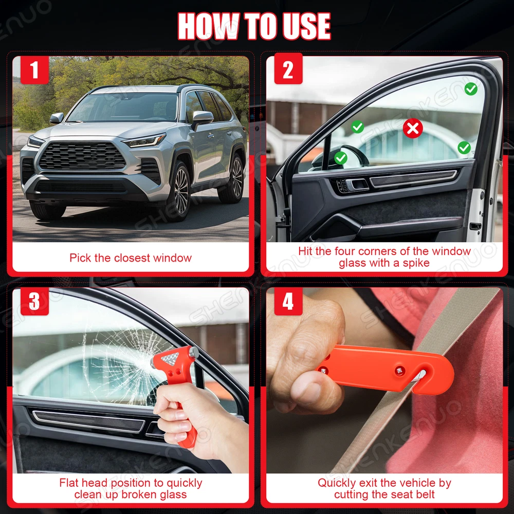 Item Description Description: The Emergency Hammer is a tool every driver should have. It is designed to help prevent being trapped in a wrecked or submerged vehicle. Should the doors become jammed shut or a seat belt locked after an accident, the double-sided steel hammer points allow the driver to easily shatter side and rear windows, while a safeguarded razor blade cuts easily through safety belts for a quick escape.This emergency hammer includes a black mounting bracket for quick access installation to a roof, dash, or console. The bright orange plastic body make the hammer easy to find. Features: 【Car Essential】 An invaluable addition to your vehicle safety kit. 2 in 1 window breaker and seatbelt cutter, allowing you to quickly escape in emergency. 【High Quality】 High-grade carbon steel double-headed makes the hammer extremely sturdy, easy to break windows and save lives. The Razor-sharp blade mounted in a safe curved hook is made of high quality steel that can cut the seat belt quite easily. 【Well Designed】 The bright red color makes it easy to find in the dark or in a state of panic. Anti-slip handle and light weight make it easy to control. 【Extra Security】 Multi-pack safety hammers that can be placed in different parts of your car, ready to be picked up by drivers and passengers in case of emergency. You can also share it as a gift to your family and friends. Features: * Dual-Sided Hardened Steel Impact Points * Safeguarded Razor Blade * Strong Bright Orange Plastic Body * Light and Compact Package Includes: 1 × Car Emergency Escape Hammer Tool Shipping Policy Payment Method Returns Policy Warranty Shipping Policy 1) Item Located in UK , We will ship all orders asap from our UK warehouse, All shipment will ship by Royal Mail.Not include small package which less than £5. 2) Item Located in China ,We will ship from China Warehouse.( No service on Weekend and public holidays). 3) We will ship out all orders as soon as possible after payment verified, please allow up to 1-4 business days for delivery. 4) Delivery time within the UK. is usually just 3 to 6 business days, however in rare cases it could take 6 to 7 business days. Why Choose the UK Stock? 1. UK Local Shipping, No Extra Customs Cost to the UK. 2. Fast Delivery: 3-6 Working days Delivery. 3. Best After-Sales Service!!! Payment Method We accept PayPal only. Payment must be made within 4 days of auction closing. (Non-payment may result in a UPI