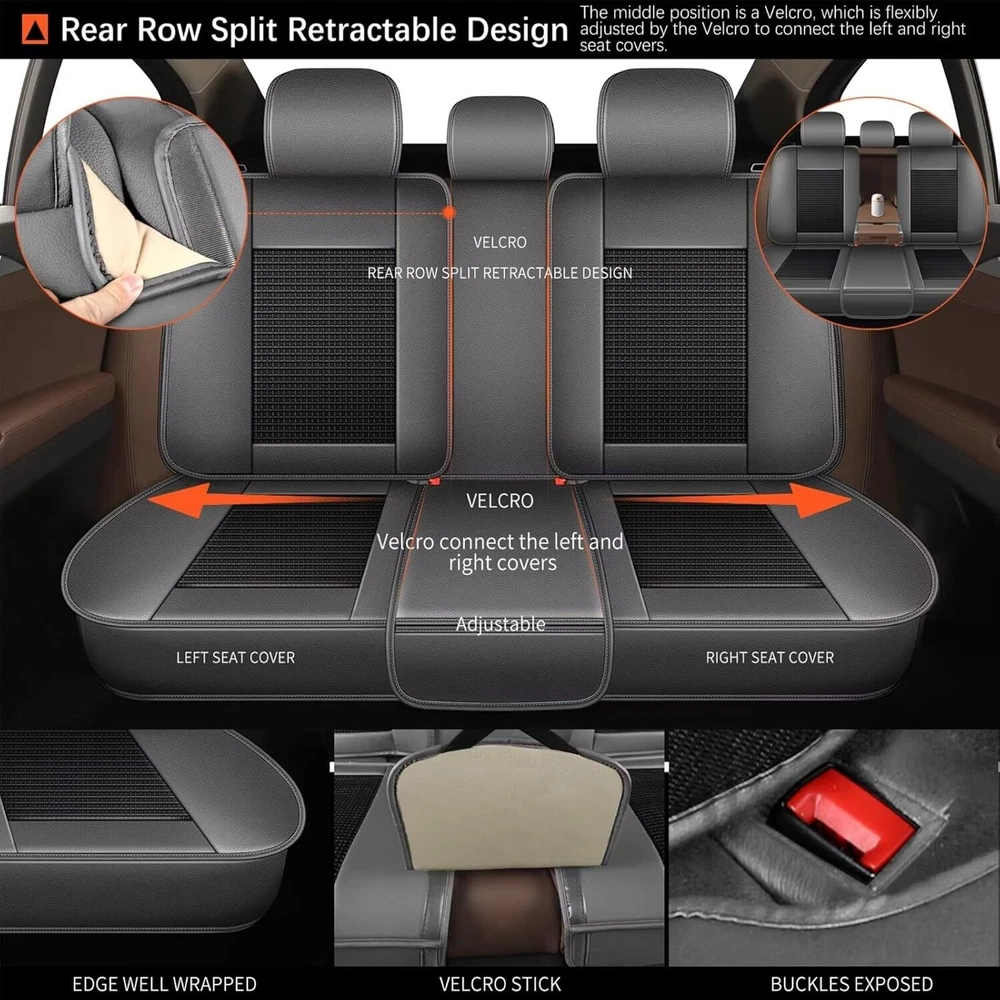 Notices: All the pictures have been professionally corrected, but due to the different ambient light and different display device settings, there may be some deviations in the pictures and items you see, please understand! Features: ❤ Easy to clean: Wipe clean easily with just a damp towel, keeping your seat protects from stains, spills and damage. ❤ Easy to install: The package comes with an installation manual, please read it before you start the installation and you will be able to do it easily even if it is your first time. ❤ Safety: The front seats have airbag reserve ports on the side to ensure that the airbags can be popped out in case of emergency. The rear seat belt also completely exposed. ❤ Material: Premium faux leather is durable, breathable, comfortable and has good waterproof. The interior of the seat cover is filled with sponge, the appropriate thickness allows you to sit for a long time without getting tired. Specification: Type: Car Front Rear 5-Seat Covers Color: Black&Grey Material: wear - resistant leather Range of application: Full Set Seat Covers ,all seasons Fitment: Fit For Chevrolet Impala 2014-2020 Package included : 2* Front Seat Covers 1*Set of Rear Seat Covers 1* Bag of Accessories for installation