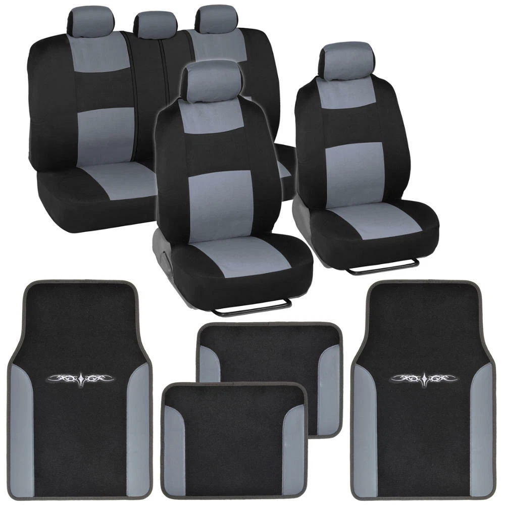 Follow us on social media floor mats seat covers car covers hub caps FREE SHIPPING IN ALL 48 CONTIGOUS STATES FREE RETURNS FREE 30 DAY RETURN POLICY DAILY UPDATES WE BRING THE LATEST ITEMS SUPPORT 24/7 Contact us via ebay Car Seat Covers Black/Gray w/ Carpet/Vinyl Trim Floor Mats Interior Protectors DESCRIPTION Preserve your seats from daily wear and tear Durable, Stretchy Rome Cloth - spreads comfortably over your seats Micro Fit Fabric - adjusts and conforms to your seat Full Set Seat Covers - Machine Washable Compatible with Side Airbags 14 PC (4 floor mats, 2 front seat covers, 3pc rear bench cover, 5 headrest covers) This seat cover combo rubber floor mat combo is perfect for any car, truck, or suv. Seat covers are made from polyester, enforced with a sponge backing, which can provide specific advantages over natural fabrics, such as improved wrinkle resistance, durability and high color retention.The fabric is breathable, allowing for airflow and prevents sweat and moisture from building up on your back. Heavy duty plush thick pile carpet floor mat with licensed graphic design. The backing is made from rubber PVC which prevent from sliding and shifting. WARRANTY INFO Free 365 Days Buyer Protection Program Our team works hard for you. Because we have such great relationships with our vendors and manufacturers, we also would like to pass on some of the benefits that we have as a retailer back to our valued customers in the form of warranty and buyer-protection program. Items in the categories of Automotive Accessories are covered by our 365 days buyer-protection program. However any perishable goods such as Airfreshner and etc. are not covered. If you need more information regarding warranty or have any question, please contact us anytime! SHIPPING INFO TERMS & CONDITIONS RETURNS INFO Coast to Coast Shipping From CA and NJ Warehouses We Ship from our two major warehouses in California and New Jersey Since we have multiple warehouse unlike others, we can ship the items faster! Any orders destined for HI, PR, AK and non-contiguous US states will incur small extra cost. 1 Day Business Day Processing Time Guarantee All orders are processed within 1 business day. Any express, changes, or cancellations must be received before 8AM PST. However we cannot guarantee changes after the mentioned cutoff time. Each orders will be shipped from our closest distribution center. All changes and cancellations must be received before 8AM PST. We are not responsible for shipping fee if buyer decided to ship the item using their own carrier. 100% FREE RETURNS WITHIN 30 DAYS* To ensure highest customer satisfaction, we provide 100% free return service! If the product different from what we have described? Return it! If the size is or fitment guide is wrong? Return it! In case you are not satisfied or have any kind of question, please call or email us and let us help you. *For all International order buyers are responsible for returning the package TIPS TO ENSURE THAT YOU ITEM and SHIPPING IS CORRECT Please always verify the address during checkout When paying with PAYPAL, please ensure that the shipping address on paypal is the desired address. Please ensure that the item matches your desired fitment EASY 3-STEPS RETURN PROCEDURE Fill out Return Materials Authorization form (We will send it to you) Attach the original invoice Return the item with RMA and original invoice CAUTION: We cannot re-route shipments with INCORRECT Address. Buyer is responsible to re-route or obtain package. We are not responsible for wrong ordering color, size, incorrect or invalid address, phone # or email NOTE: If you are reporting loss package, please contact your respective local USPS or UPS office. If you have any other questions or concerns, please Send us eBay message WARNING: This product contains chemicals known to the State of California to cause cancer and birth defects or other reproductive harm Return is allowed except for the following reasons: Used or damaged goods (due to use) cannot be returned Wrong address Incorrect or invalid quantity entered Invalid address or unmatching information The following items must be included when returning: Package or item must be in original condition and must be used. Must be within contiguous 48 US States Must provide a valid reason for return Your shipping name must be the same or a verified buyer Valid contact information such as phone, address, name, payment method Must be submitted within 30 days of the purchase of the item A valid RMA# must be accompanied with every return Exclusive Automotive Accessories Your One-Stop Shop for the Best in Auto Accessories. Seat Covers, Floor Mats for Cars, Trucks, Vans & SUVs available in hundreds of varieties of patterns, styles and materials.