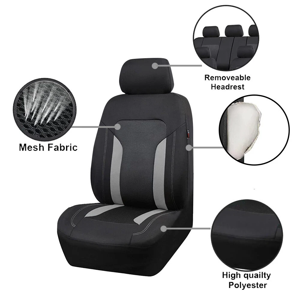 Headrest Covers Size: 28*26cm Brand: BCSMMCAR Type: Seat Cover Color: Black Include: 2pcs front seat covers - 2pcs headrest covers gtin13: 929131147227 Items Included: Headrest Cover Applicable Season: Autumn Winter Spring Summer Manufacturer Part Number: 477857 OE/OEM Part Number: 5866446 Country/Region of Manufacture: United States Placement on Vehicle: Front Front Seat Covers Size: 114*57cm UPC: 929131147227 Manufacturer Warranty: 1 Year Material: Mesh Performance Part: Yes Features: Breathable