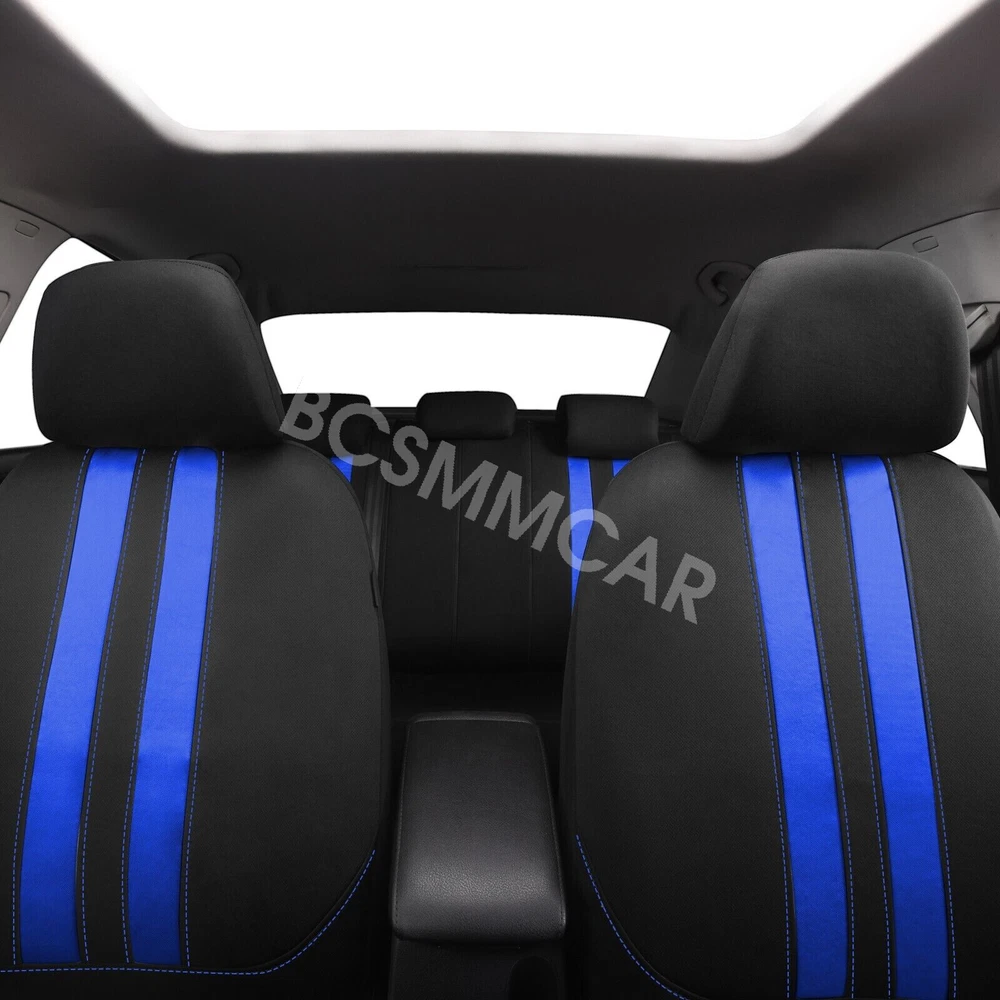 Material: Polyester OE/OEM Part Number: Universal Manufacturer Warranty: 1 Year UPC: 945121289258 Features: Breathable, Easy Installation Type: Seat Cover Placement on Vehicle: Front, Rear Manufacturer Part Number: AD-37911-L2 Brand: BCSMMCAR Performance Part: Yes Seat Type: Full Set Country/Region of Manufacture: China gtin13: 945121289258 Color: Black/Blue Items Included: Headrest Cover