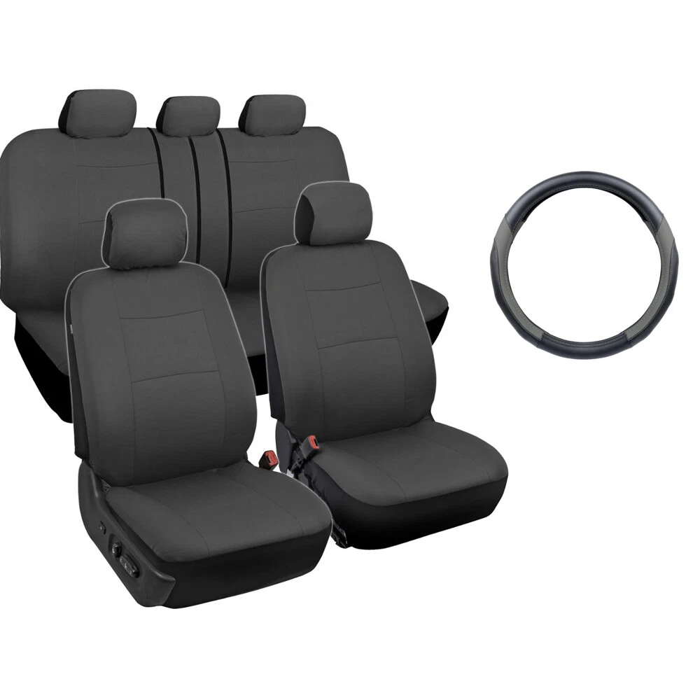 Follow us on social media floor mats seat covers car covers hub caps FREE SHIPPING IN ALL 48 CONTIGOUS STATES FREE RETURNS FREE 30 DAY RETURN POLICY DAILY UPDATES WE BRING THE LATEST ITEMS SUPPORT 24/7 Contact us via ebay Car Seat Covers Front/Rear + Leather Steering Wheel Cover Universal Gray DESCRIPTION Total Protection - Guard Against Dirt, Spills & Stains Ultra-Comfort - Machine Washable Polyester Cloth with Foam Backing Includes Seat Covers for Front Driver & Passenger Seats, Rear Bench, and All Headrests Keep your steering wheel looking like new Protects your wheel from dirt, dust, and oily fingers Insulates your wheel from hot and cold temperatures Keep your car looking new with our PolyPro Car Seat Covers + matching Microfiber Leather Steering Wheel Cover set. Cover will fit steering wheels with a 14.5"-15.5" diameter. We recommend you measure your steering wheel prior to purchase to ensure proper fitment. These thick and durable seat covers will protect your seats from liquids, foods, and any spills or accidents. Soft polyester cloth feels nice and cool while keeping the interior of your car looking like new. No hooks, multiple straps, or cutting required! You will love the quick and simple installation of these seat covers. Simply cover and attach the one strap. Super easy and stays in place. WARRANTY INFO Free 365 Days Buyer Protection Program Our team works hard for you. Because we have such great relationships with our vendors and manufacturers, we also would like to pass on some of the benefits that we have as a retailer back to our valued customers in the form of warranty and buyer-protection program. Items in the categories of Automotive Accessories are covered by our 365 days buyer-protection program. However any perishable goods such as Airfreshner and etc. are not covered. If you need more information regarding warranty or have any question, please contact us anytime! SHIPPING INFO TERMS & CONDITIONS RETURNS INFO Coast to Coast Shipping From CA and NJ Warehouses We Ship from our two major warehouses in California and New Jersey Since we have multiple warehouse unlike others, we can ship the items faster! Any orders destined for HI, PR, AK and non-contiguous US states will incur small extra cost. 1 Day Business Day Processing Time Guarantee All orders are processed within 1 business day. Any express, changes, or cancellations must be received before 8AM PST. However we cannot guarantee changes after the mentioned cutoff time. Each orders will be shipped from our closest distribution center. All changes and cancellations must be received before 8AM PST. We are not responsible for shipping fee if buyer decided to ship the item using their own carrier. 100% FREE RETURNS WITHIN 30 DAYS* To ensure highest customer satisfaction, we provide 100% free return service! If the product different from what we have described? Return it! If the size is or fitment guide is wrong? Return it! In case you are not satisfied or have any kind of question, please call or email us and let us help you. *For all International order buyers are responsible for returning the package TIPS TO ENSURE THAT YOU ITEM and SHIPPING IS CORRECT Please always verify the address during checkout When paying with PAYPAL, please ensure that the shipping address on paypal is the desired address. Please ensure that the item matches your desired fitment EASY 3-STEPS RETURN PROCEDURE Fill out Return Materials Authorization form (We will send it to you) Attach the original invoice Return the item with RMA and original invoice CAUTION: We cannot re-route shipments with INCORRECT Address. Buyer is responsible to re-route or obtain package. We are not responsible for wrong ordering color, size, incorrect or invalid address, phone # or email NOTE: If you are reporting loss package, please contact your respective local USPS or UPS office. If you have any other questions or concerns, please Send us eBay message WARNING: This product contains chemicals known to the State of California to cause cancer and birth defects or other reproductive harm Return is allowed except for the following reasons: Used or damaged goods (due to use) cannot be returned Wrong address Incorrect or invalid quantity entered Invalid address or unmatching information The following items must be included when returning: Package or item must be in original condition and must be used. Must be within contiguous 48 US States Must provide a valid reason for return Your shipping name must be the same or a verified buyer Valid contact information such as phone, address, name, payment method Must be submitted within 30 days of the purchase of the item A valid RMA# must be accompanied with every return Exclusive Automotive Accessories Your One-Stop Shop for the Best in Auto Accessories. Seat Covers, Floor Mats for Cars, Trucks, Vans & SUVs available in hundreds of varieties of patterns, styles and materials.