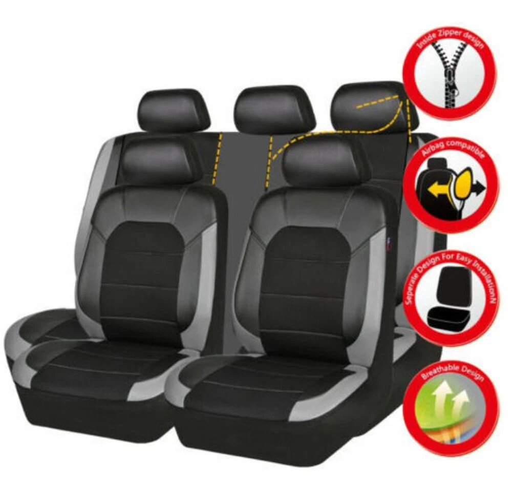 Product Description PU Leather Black/Gray Car Seat Covers Full Set Compatible Automobile Seat Cushion Protector Interior Accessories Fit Five Seat Cars Add our listing to Watchlist Or Add to Cart , you will get more discount This seat covers fits most Detachable Headrest seats . Seat covers can extend the life of your vehicle and keep your seats looking brand new and clean. These seat covers fit most of the standard vehicles including sedan, SUV, truck, van and minivan. 1, Universal application fits almost all five seats Cars 2, Helps Protect a Nice Seat or Disguise an Old One 3, compatible 4, Easy to install Features: 100% Brand new and high quality! Easy Installation Durable and Long Lasting Comfortable in Four Season Color: Black/Gray Material: PU Leather (The middle part is not leather ) Description: 1.The car seat cover is full set. 2.It is very easy to install the car seat cover, doesn't need to dismantle the seats, a person can complete it in 20 minutes. 3.The car seat cover doesn't affect, doesn't affect the child safty seat, doesn't affect the seat belts,too. 4.The car seat cover is universal,it is suitable for most of cars,If you are unsure if this cover is right for your vehicle, please contact us before buying. Package Included: 5 seat head covers: 30*27cm 2 front seat covers: 118*56cm 1 backrest: 135*76cm 1 rear seat cushion: 135*56cm Accessories: one pack of hooks Payment Returns Contact Us Shipping We accept payment by PayPal only ! Payment should be completed within 5 days after buyer places the order,or else an unpaid case will be opened in order to cancel the transaction. If you can not pay in time, please contact us. e-check from PayPal will only be processed once the payment clears. All of the items will be shipped to buyer's EBAY address,please confirm your address on Ebay before you buy.Your order will be usually shipped out the same or next business days once the payment is made and cleared. 30-day Warranty with Exchange for defective, malfunctioned, incorrect or parts-missing items. Please notify us and return the item with all parts and accessories packed and marked "FOR EXCHANGE" within 14 days of receipt. If defective, malfunctioned or parts-missing items are no longer available, a refund may be issued. All returning postage costs will be the responsibility of the buyers under all circumstances. If you encounter any problems about anything, please feel free to contact us and we will do our best to assist you solve the issue. If you are not satisfied in anyway, please feel free to let us know and give us a second chance to correct it before you decide to leave any neutral or negative feedback. Please contact us through eBay link if you have any questions. We will reply you within 24- 48 hours. Please check you spam mail if no response for 48 hours. All items will be checked before packing. All items are new and of high quality. Item will be shipped within 1 business days upon receipt of payment, excluding weekends and public holidays. If to USA,we will ship your order by USPS,it will take about 8-12 working days to you,and you can track it on line. If to other country,we will ship your order by China Post or Singapore Registered Air Mail,it will take about 14-21 working days to you,you aslo can track it on line. Delivery time is about 14-28 business days and it may take up to 8 weeks . Payment We accept payment by PayPal only ! Payment should be completed within 7 days after buyer places the order,or else an unpaid case will be opened in order to cancel the transaction. If you can not pay in time, please contact us. eCHECK from PayPal will only be processed once the payment clears. All of the items will be shipped to buyer's EBAY address,please confirm your address on Ebay before you buy.Your order will be usually shipped out the same or next business days once the payment is made and cleared. Returns 30-day Warranty with Exchange for defective, malfunctioned, incorrect or parts-missing items. Please notify us and return the item with all parts and accessories packed and marked "FOR EXCHANGE" within 14 days of receipt. If defective, malfunctioned or parts-missing items are no longer available, a refund may be issued. All returning postage costs will be the responsibility of the buyers under all circumstances. Contact Us If you encounter any problems about anything, please feel free to contact us and we will do our best to assist you solve the issue. If you are not satisfied in anyway, please feel free to let us know and give us a second chance to correct it before you decide to leave any neutral or negative feedback. Please contact us through eBay link if you have any questions. We will reply you within 24- 48 hours. Please check you spam mail if no response for 48 hours. Shipping All items will be checked before packing. All items are new and of high quality. Item will be shipped within 1 business days upon receipt of payment, excluding weekends and public holidays. If to USA,we will ship your order by USPS,it will take about 7-10 working days to you,and you can track it on line. If to other country,we will ship your order by China Post or Singapore Registered Air Mail,it will take about 14-21 working days to you,you aslo can track it on line. Delivery time is about 14-28 business days and it may take up to 8 weeks . Welcome to our Store ~