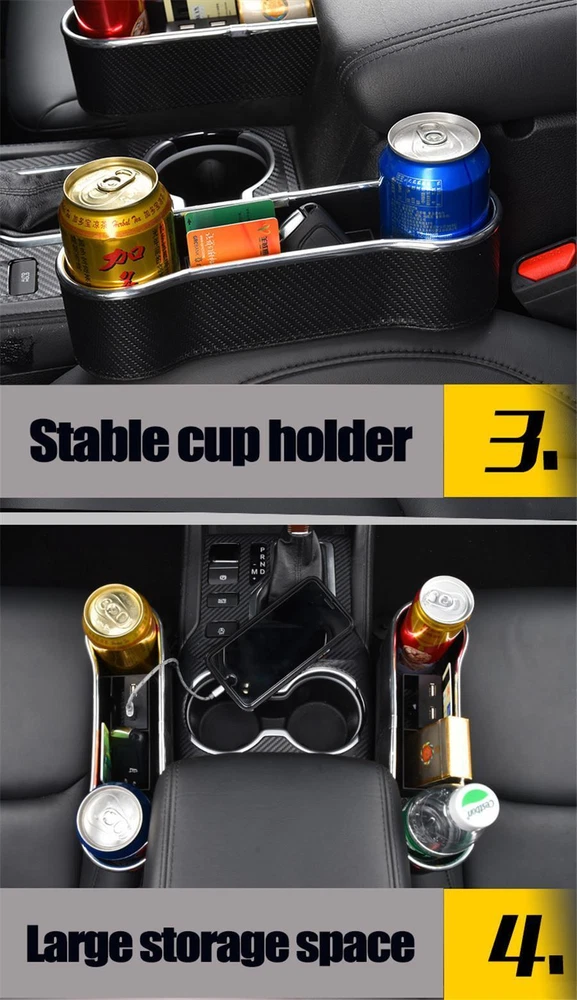 Add our listing to Watchlist Or Add to Cart , you will get more discount Features: 1. Classic fashion, elegant appearance. 2. General design, suitable for most cars, easy installation. 3. Durable and long service life. 4. Increasing the storage space in the car, it can store car key, bill, mobile phone, parking card, wallet, cigarette box and so on. 5. The design of the product can also effectively block the gap to prevent the occurrence of things falling into the seating gap. Specification: -Type: Car Storage Box(dual USB charging box) -Placement on Vehicle: Front, Left, Right (Universal to left and right) -Colour: Black (carbon fiber) -Size:As shown -Material: ABS plastic Note: -The color of the product varies somewhat due to different screen. -Please allow 0.5-1 inch difference due to manual measurement.(1 inch=2.54cm) The package includes: 1Pcs Dual USB Charging box eBay Cross Border Trade powered by ChannelEffect