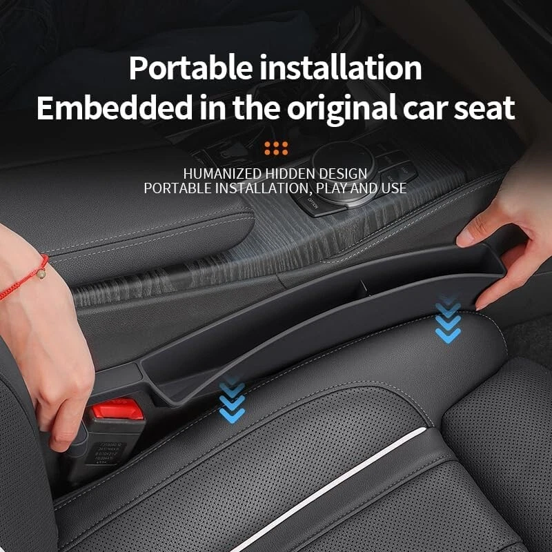 Car Seat Gap Filler Organizer with Phone Holder 2PC Car SUV Truck Seat About this item High-quality material: our car seat gap filler is made of TPE, which has the advantages of durability and elasticity, and at the same time can avoid scratching the seat Applicable: Our car seat gap filler organizer size is 15.55x1.38x3.34 inch, not suitable for gaps smaller than 0.8 inch and larger than 1.8 inch, and the centre console is lower than the seat Multi-functional use: In addition to holding things that fall into the seat crevice, our seat gap storage box also serves as storage and has a hole at the bottom for charging your mobile phone with a data cable Easy to install: our seat gap filler are a pair, which can add a protection for both the driver and passenger (the opening part is facing the seat), you can put it directly between the seat gaps, and release the seat belt buckle through the opening