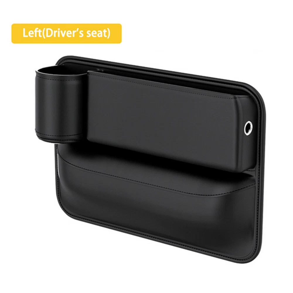 Car Seat Gap Filler Storage Bag Organizer PU Leather Cup Holder Left Right 2Pcs