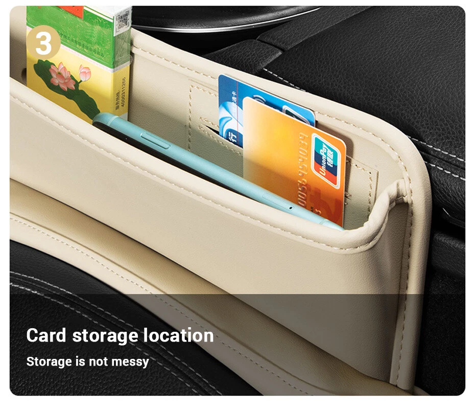 Car Seat Gap Filler Storage Box Bag Leather Phone Holder Organizer Pocket