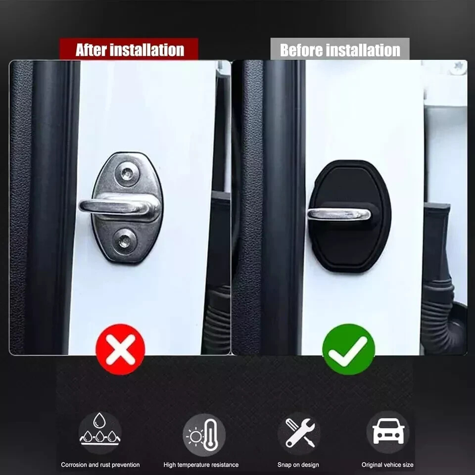 These silicone door latch covers are a game-changer! Super easy to install, they eliminate annoying rattles and protect your car from wear. The heavy-duty material feels durable, and the snug fit keeps doors quiet. Perfect for any vehicle, they blend in seamlessly while adding a layer of protection. No more metal-on-metal noise—just smooth, silent closing every time. A must-have for a quieter, more comfortable ride!