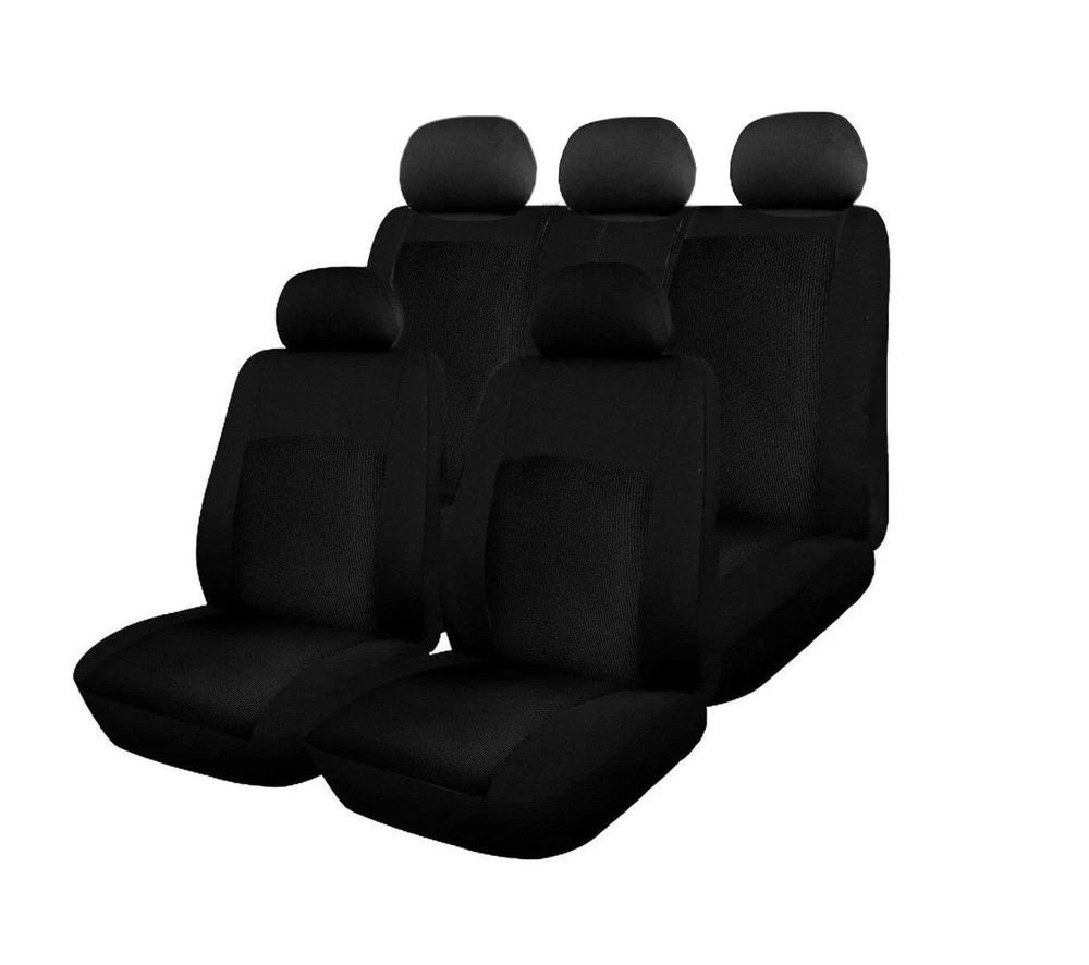 A NEW 9PCS UNIVERSAL BLACK CAR SEAT COVERS The covers will accommodate vehicles that have split rear seats, including 50/50 or 60/40 or 40/60 split rear seats. It comes with 3 zipper split rears 2 X FRONT SEAT COVERS 2 X FRONT HEAD REST COVERS 1 X REAR SEAT COVER 1 X REAR BACK COVER 3 X REAR HEAD REST COVERS 100% Polyester Breathable Material Storage bag 6 Piece Accessory Pack Embroidered Pattern Elastic Straps and Hooks for Easy Fitting NO SIDE OPENINGS FOR LEVERS ON 3DR MODELS!!! UNIVERSAL FIT SIDE AIRBAG COMPATIBLE MACHINE WASHABLE ON 40DEGREES WHAT ARE THEY FOR? These covers are intended to protect your original upholstery from dirt and wear. Even regular cleaning cannot stop everyday wear and tear. By investing in these high quality protectors you will give your vehicle great long term protection and increased resale value. Custom tailored seat covers are also an affordable way of renewing old / worn upholstery for a fraction of the price of replacement. We welcome any questions you may have on this item. Thanks for your interest!! A NEW 9PCS UNIVERSAL BLACK CAR SEAT COVERS The covers will accommodate vehicles that have split rear seats, including 50/50 or 60/40 or 40/60 split rear seats. It comes with 3 zipper split rears 100% Polyester Breathable Material 6 Piece Accessory Pack Embroidered Pattern Elastic Straps and Hooks for Easy Fitting NO SIDE OPENINGS FOR LEVERS ON 3DR MODELS!!! These covers are intended to protect your original upholstery from dirt and wear. Even regular cleaning cannot stop everyday wear and tear. By investing in these high quality protectors you will give your vehicle great long term protection and increased resale value. Custom tailored seat covers are also an affordable way of renewing old / worn upholstery for a fraction of the price of replacement. We welcome any questions you may have
