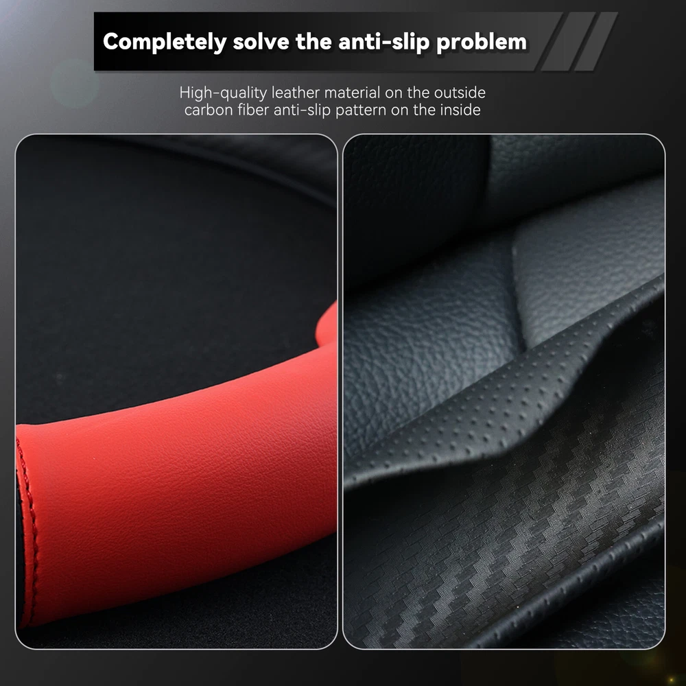 Car Steering Wheel Cover Leather Breathable Anti-slip Car Accessories Universal Features: -- Leather splicing design & customized brand logo --More suitable for the original steering wheel. --Four Seasons Universal. --Feel comfortable, anti-skid and wear-resistant. --A perfect coat for your steering wheel. Specifications: Fitment: for O/D Type Steering Wheels with an Outer Diameter of 37~39 cm(14.5" to 15.5") Color: Ruby red Material: faux leather Package contents: 1 x Steering Wheel Cover General Policies : Dear customer,if you have any questions,you can contact us,we will provide the best service for you. Shipping policy : The item will be shipped within 24 hours on payment received except the holidays.(except weekends & official holidays). You can log on to eBay to check your logistics tracking number. Please confirm address before purchase, and cannot change address once purchased. If you need to receive the item quickly, please contact us, you can pay the postage to choose other logistics. Payment: Please purchase and pay for the item through the eBay,only acc e pted the paypal payment. Returns: Please contact us first when return, exchange and refund is required. Any direct return of purchased items will not be processed. Item must be returned in new condition, as received with all accompanied accessories and literature, including the factory carton. Shipping, handling is not refundable unless item is returned because of defect. If the product is defective or damage upon arrival,please contact us immediately,we will provide the solve the problem. Returns accepted within 30 days of delivery date and item must be in original new condition. About us: Our goal is complete customer satisfaction. We will be very honored to provide you with quality service. If there is an issue with shipping or the item you purchased please contact us via e B ay message or call us before opening a case or leaving feedback.We will try our best to resolve any kind of issue.