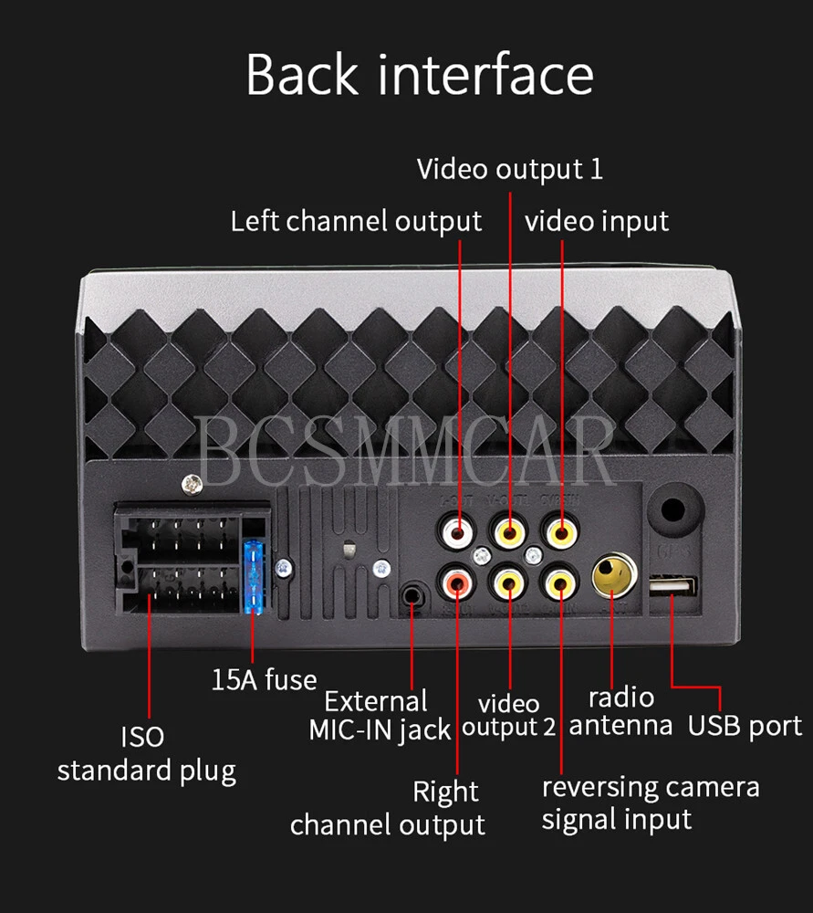Product View Detail 7" 2DIN For Apple Carplay Car Stereo Radio Bluetooth Touch screen SD USB AUX-IN FM Video MP5 Player With 4LED Rear Camera Kit Note:Not is universal , Please check with your car panel's size !!! Supports CarPlay function on Apple phones and Android Auto function on Android phones, allowing you to navigate, make calls, send and receive messages, and listen to your favorite songs. All of this is integrated into the central control display screen inside the car. Bluetooth 5.1 version compared to the previous generation: 1. More stable signal; 2. Most mobile phones can automatically pair; 3. Lower power consumption and more environmentally friendly. Product Introduction: Type: Car MP5 Radio frequency: FM 87.5-108.0MHz AM522-1620KHz (AM display blocked on website) Output power: 60Wx4 Working voltage: 12~14.4V Working temperature: -10~60 ℃ Bluetooth version: 5.1 (default name: Car BT) Display resolution: 800x480 Screen size: 7 inches Installation size: 178x103MM Total number of boxes: 20 units Single unit weight: 0.682KG Net weight of the whole box: 13.64KG Audio format: MP3/AAC/APE/OGG/M4A/RA/WAV Video format: H263/H264/H265/DIVX HD/AVI/FLV/MKV/MPEG/MP4/WMV9/VC/ASF/TS/QT Image format: JPEG/PNG/BMP/GIF/TIFF Language parameters: English/Chinese/French/German/Italian/Japanese/Portuguese/Russian/Spanish Accessories: 1. Host 2. Manual 3. Power cord 4. Remote control 5.4LED Rear Camera Shipping Policy Payment Method Returns Policy Shipping Policy Payment Method Returns Policy Copyright © 2017 DataCaciques Home Payment Shipping About us Contact us BCSMMCAR Store Categories Store Categories Other Product View Detail 7" 2DIN For Apple Carplay Car Stereo Radio Bluetooth Touch screen SD USB AUX-IN FM Video MP5 Player With 4LED Rear Camera Kit Note:Not is universal , Please check with your car panel's size !!! Supports CarPlay function on Apple phones and Android Auto function on Android phones, allowing you to navigate, make calls, send and receive messages, and listen to your favorite songs. All of this is integrated into the central control display screen inside the car. Bluetooth 5.1 version compared to the previous generation: 1. More stable signal; 2. Most mobile phones can automatically pair; 3. Lower power consumption and more environmentally friendly. Product Introduction: Type: Car MP5 Radio frequency: FM 87.5-108.0MHz AM522-1620KHz (AM display blocked on website) Output power: 60Wx4 Working voltage: 12~14.4V Working temperature: -10~60 ℃ Bluetooth version: 5.1 (default name: Car BT) Display resolution: 800x480 Screen size: 7 inches Installation size: 178x103MM Total number of boxes: 20 units Single unit weight: 0.682KG Net weight of the whole box: 13.64KG Audio format: MP3/AAC/APE/OGG/M4A/RA/WAV Video format: H263/H264/H265/DIVX HD/AVI/FLV/MKV/MPEG/MP4/WMV9/VC/ASF/TS/QT Image format: JPEG/PNG/BMP/GIF/TIFF Language parameters: English/Chinese/French/German/Italian/Japanese/Portuguese/Russian/Spanish Accessories: 1. Host 2. Manual 3. Power cord 4. Remote control 5.4LED Rear Camera Shipping Policy Payment Method Returns Policy Contact US Shipping Policy All items will be checked before packing. All items are new and of high quality. Item will be shipped within 1 business days upon receipt of payment, excluding weekends and public holidays. If to USA,we will ship your order by USPS,it will take about 8-12 working days to you,and you can track it on line. If to other country,we will ship your order by China Post or Singapore Registered Air Mail,it will take about 14-21 working days to you,you aslo can track it on line. Delivery time is about 14-28 business days and it may take up to 8 weeks . Payment Method We accept payment by PayPal only ! Payment should be completed within 5 days after buyer places the order,or else an unpaid case will be opened in order to cancel the transaction. If you can not pay in time, please contact us. e-check from PayPal will only be processed once the payment clears. All of the items will be shipped to buyer's EBAY address,please confirm your address on Ebay before you buy.Your order will be usually shipped out the same or next business days once the payment is made and cleared. Returns Policy 30-day Warranty with Exchange for defective, malfunctioned, incorrect or parts-missing items. Please notify us and return the item with all parts and accessories packed and marked "FOR EXCHANGE" within 14 days of receipt. If defective, malfunctioned or parts-missing items are no longer available, a refund may be issued. All returning postage costs will be the responsibility of the buyers under all circumstances. Contact US If you encounter any problems about anything, please feel free to contact us and we will do our best to assist you solve the issue. If you are not satisfied in anyway, please feel free to let us know and give us a second chance to correct it before you decide to leave any neutral or negative feedback. Please contact us through eBay link if you have any questions. We will reply you within 24- 48 hours. Please check you spam mail if no response for 48 hours. Home Payment Shipping About us Contact us