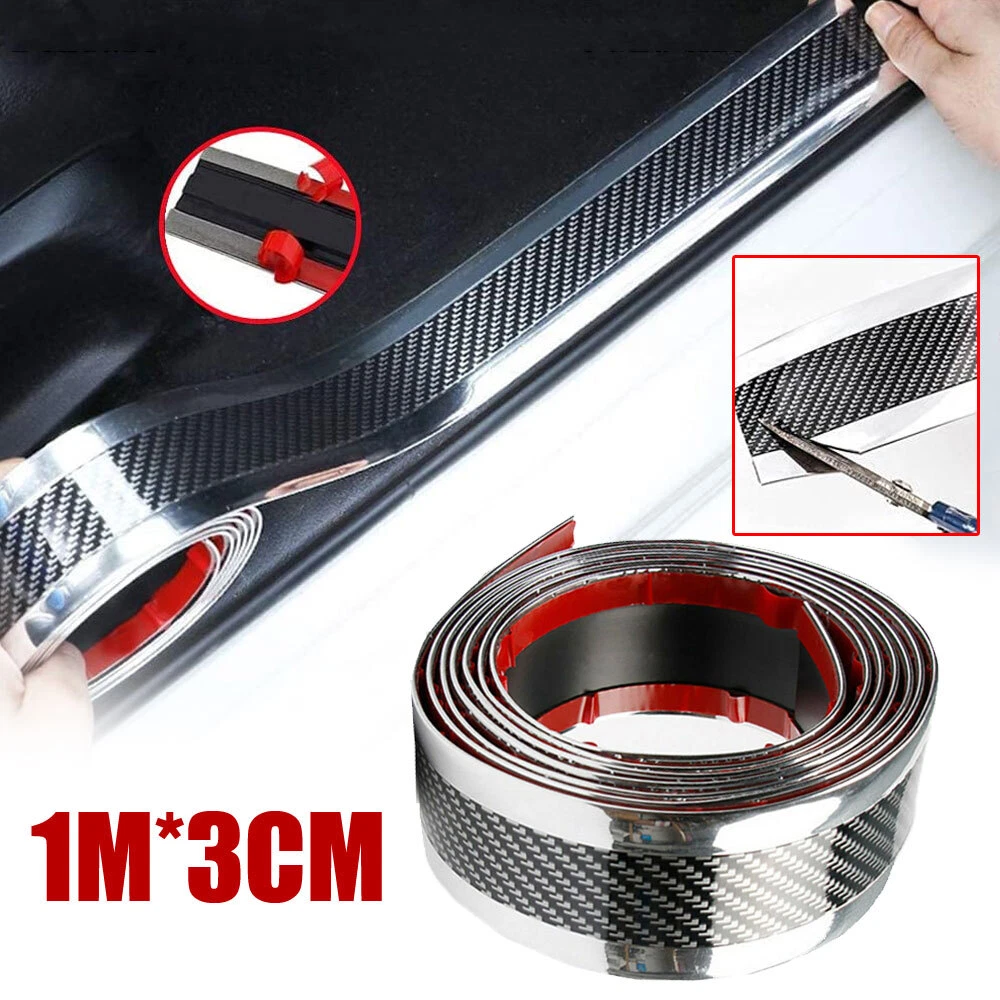 Car Sticker Sliver Carbon Fiber Rubber Door Sill Protector Edge Guard Strip Trim