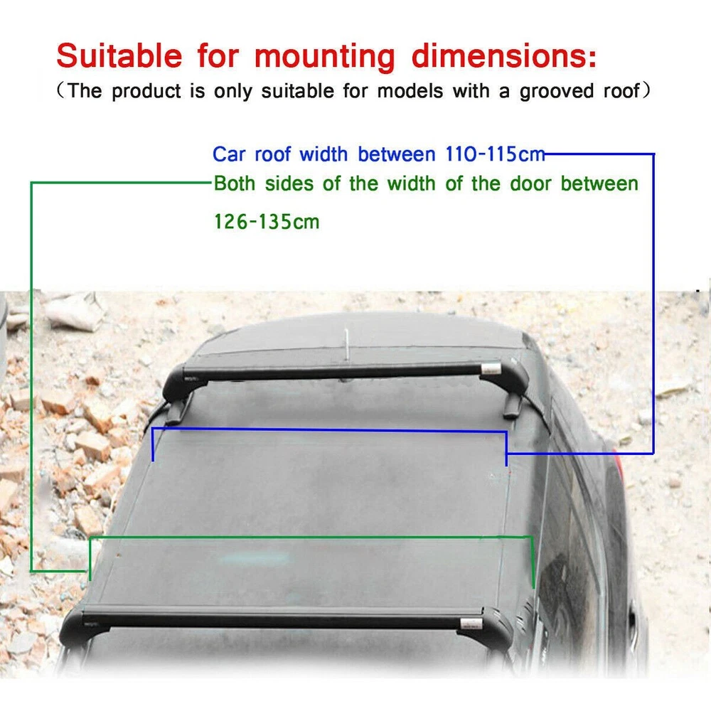 NOTE: Compatibility only for recommended , Pls making sure your car’s roof flat width is 110-114 cm !!!Before buying, please measure the length of your car, because the return of size problem will cause us great losses ,Please excuse !! Features : Refitfullrange Car Top Roof Rack Cross Bar 43.3" Luggage Carrier Adjustable Aluminum-Universal NOTE: Compatibility only for recommended , Pls making sure your car’s roof flat width is 110-114 cm !!!Before buying, please measure the length of your car, because the return of size problem will cause us great losses ,Please excuse !! Features : Designed for Cars that Do Not Have Raised Roof Rails Already Fitted Lockable Anti-Theft Design - 2 Locks Per Bar (includes keys) Suitable for 4 or 5 Door Cars Only (not suitable for 3 door cars, van or large 4x4s) Metal Brackets Clamp Under Door Recess - Includes 2 Clamp Types (pictured) Ratchet Tensioners Allow Easy Adjustment Always Ensure Bars Are Securely Fitted Before Driving Light Assembly Required Specification : Color : Black Roof Bars Size : Details show in the picture Bar Length : 1m Suitable for car roof flat width is 110-114 cm (Not included both side just the roof flat width !!!) Only Fits 110 - 114cm (43.3 - 44.8inch) inner distance between car's rain gutters. Quantity : Supplied in Pairs Max Load : 75kgs (load must be uniformly distributed across the bars) Package Included: 2 x Car Roof Bars (2 keys included) Item Specifics Type Roof Rack Brand refitfullrange Manufacturer Part Number RF1051390LL Placement on Vehicle Roof Surface Finish Aluminum bar, base feet, stainless steel brace Length 100cm / 39.37in Material Aluminum , plastic, stainless steel Fitment Type Direct Replacement Contents of the package 2 x Car Roof Bars (2 keys included) Color Black Suitable For car roof flat width is 110-115 cm Manufacturer Warranty 2 Years Quantity Supplied In Pairs Max Load 75Kgs(165lbs) Bar Length 1M Payment We accept Paypal,Google Pay,VISA,Master Card,American Express,Discover,eBay Mastercard payment. We process your order within 3 business day upon payment(note: NOT counting holidays or weekends). Local pickup NOT available at this time. Shipping Product will be shipped within3 business days after full payment is received and verified. Delivery Time is about 3-7 business days to most of countries. All domestic orders will be shipped via USPS or FedEx from our US warehouse and usually arrives to your door in about 3-5 business days. We ship the package to your shipping address in eBay instead of the one in PayPal. Please tell us your shipping address if it is different from the one in eBay. The tracking number will be given for the customer to check the shipping status online (registered or faster service only). We are not responsible for any wrong or undeliverable addresses. Please verify and update your shipping address on eBay during checkout. Returns Please contact us first when return, exchange and refund is required. Any direct return of purchased items will not be processed. Change-of-mind return can only be accepted within 7 days after purchase. All other returns can be accepted in 30 days. We will closely examine the condition of the returned items and will not issue any refund/exchange before we make sure the items are in their original neat conditions. Feedback Our office hours are every day except Sunday,Before leaving us neutral or negative feedback, please contact us first. We will do everything we can to give you a satisfying solution. Please don't open case via eBay or PayPal. Please don't open any return request before contact us. We do our best to resolve any issue. Leaving negative feedback and low ratings doesn't get things solved. So please talk with us and we will not let you down. About Us We are committed to providing you provides high quality Trunk Spoiler Wing, Front Bumper Lip,Rear Lip , side skirt,Window shutter cover,Soft top,Rain Guard,etc.Will Dramatically Improve The Appearance For Your Love Car.You choose to buy in our store is to choose high-quality products and professional quality services. Let's class up your love car and make it stands out from the crowd. Refitfullrange DESCRIPTION PAYMENT SHIPPING RETURN POLICY CONTACT US Shop Category Store Home Exterior trimming parts ◈ Rear Trunk Spoiler Wing ◈ Car Soft Top ◈ Front Bumper Lip ◈ Car Side Skirt ◈ Front Bumper Trim ◈ Rear Bumper Trim ◈ Automobile Hub Cover ◈ Rain Guard ◈ Roof Rack Cross Bar Carrier ◈ Auto body trim panel ◈ Body trim ◈ Fender Flares ◈ Front Grill Other Hot Item For Dodge Durango 2011-2019 2020 Fender Flares Wheel Arch Front Driver Side USD 39.79 Fit For Benz C-Class C300/C350 08-11 Front Bumper Lower Grille Replacement Grill USD 25.92 Black Steel Front Bumper Reinforcement Face Bar For Ford Mustang 2015 2016-2021 USD 39.03 For 2016 2017 2018 Chevrolet Silverado 1500 2Pcs Front Bumper Brackets USD 74.25 Parking Lights Turn Signals For 2001-2004 Toyota Tacoma Side Marker Corner LH+RH USD 22.81 Car Top Roof Rack Cross Bar 43.3" Luggage Carrier Adjustable Aluminum-Universal NOTE: Compatibility only for recommended , Pls making sure your car’s roof flat width is 110-114 cm !!!Before buying, please measure the length of your car, because the return of size problem will cause us great losses ,Please excuse !! Features : Designed for Cars that Do Not Have Raised Roof Rails Already Fitted Lockable Anti-Theft Design - 2 Locks Per Bar (includes keys) Suitable for 4 or 5 Door Cars Only (not suitable for 3 door cars, van or large 4x4s) Metal Brackets Clamp Under Door Recess - Includes 2 Clamp Types (pictured) Ratchet Tensioners Allow Easy Adjustment Always Ensure Bars Are Securely Fitted Before Driving Light Assembly Required Specification : Color : Black Roof Bars Size : Details show in the picture Bar Length : 1m Suitable for car roof flat width is 110-114 cm (Not included both side just the roof flat width !!!) Only Fits 110 - 114cm (43.3 - 44.8inch) inner distance between car's