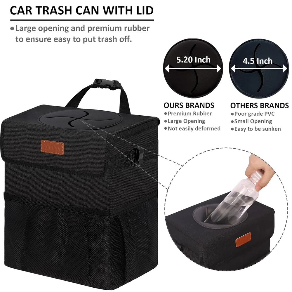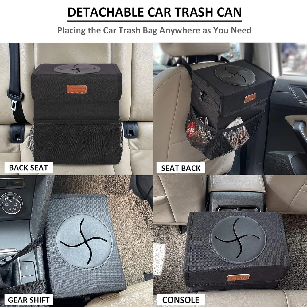 Keep Your Car Clean: Are you always bothered by the messy of the car interior; Vankor's car trash can with lid will help you to solve this annoyance; This cute car trash can will be helpful for keeping your car clutter-free, ensuring you are in a good mood while driving; Large car trash can with an adjustable strap is hung on the gear shift, glove box, headrest; You can also display the hanging car trash bag on the floor, hanging on the back seat, co-driver seat, or any place in your car Multipurpose Storage: Vankor car garbage can is functional, you can put the car garbage into the main bag, there are 3 outer pouch pockets of garbage can for car that will be great to help storage; You can put tissue packs, wipes, snacks, umbrellas, and other little things that you need to keep in your car to avoid mess, and for easy access; In addition, the waterproof performance also achieves the automotive garbage cans an excellent storage bag when you are camping or picnicking Intimate Design& Capacity: There are 2 side clasps for fixing disposable bags, effectively preventing falling out; Vankor car trash bags have about 2.2 and 3.0 Gallons for storage of car garbage or other stuff; Car trash bin has 100% leak-proof PEVA thick lining, no spillages will happen and is easy to be cleaned; The extra-large opening is made of elastic soft rubber, very roomy and easier to put litter into the bag, and helps to keep trash from spilling Wide Compatibility: An thoughtful solution for people who have the need for car neat and car interior storage; Perfectly fits varieties of types of vehicles including sedans, SUVs, RVs, trucks, vans, minivans, boats, campers, taxis, buses, etc; Auto trash can for car is very sturdy , has a long service life, and is very convenient to carry; The car trash can for the back seat is foldable, when you don't need it, just fold it up without taking up any space Product Description Hello, Ladies and Gentlemen! Whether you’re taking a road trip or commuting to work, if you have a family or spend a lot of time traveling from place to place in your car, having a car trash can is an easy way to keep your vehicle’s interior tidy. We’re all guilty of tossing crumpled-up napkins, crumbs, change into our cup holders. Avoid the buildup of trash with a Vankor car trash can! In order to meet the aesthetics of a wider range of car interior decoration styles and people, we have designed solid and floral pattern. Before launching these car trash bags, we thoroughly checked it for capacity, ease of installation, and additional features, including dual functionality as a car organizer. These auto trash bag will keep you organized and make it easier to throw out your garbage. Okay, Just start your travel now! Car Trash Can with Lid Soft lid to put the bottle and other car trash easily. Don't worry about soiled by unfinished drinks. Waterproof & Seamless Linning 100% leak-proof lining to ensure your car is dry & neat. Adjustable Buckle & Strudy Stitching Car trash bag hanging is designed for most car, trucks, minivans, campers; You can install easily it in somewhere of your car. Strudy Stitching to ensure it has a long service life. As a Car Trash Can It is easy to collect wrappers, receipts, and odds and ends in your car. For it to not look dirty and cluttered, keep a car trash can in your car. As a Car Cooler These car trash cans are even insulated, which means you can use them as a cooler when traveling to visit family. As a Storage Bag Having a garbage can in the car is the best way to storage snacks and food for the car. Universal Compatibility Make everywhere clean: the multifunction trash can not only make your car clean and tidy but also hold up lots of garbage or food at some situations like Family Gathering, Journey, Picnic, Camping, Short Trip, Beach and so on.