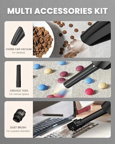 Return Policy Fast Delivery Trusted seller Car Vacuum Cordless, Handheld Car Vacuum with Best Suction and 12000PA Brushless Motor, Portable Rechargeable Mini Hand Held Vacuum Cleaner with HEPA Filter for Home, Office, Car, Pet, Dust Product Description 12000PA POWERFUL BRUSHLESS MOTOR: Handheld vacuum cleaner upgraded brushless motor, suction power up to 12000PA. At the same time reduces noise and disturbance to others, also reduces wear and tear during use effectively, resulting in a longer lifespan of the car vacuum. Super strong motor and long battery life can help you with comprehensive cleaning. which terminates any dirt, debris, dog hair, soil, sand or crumbs quickly. SMALLER BUT CLEANER: Only 0.8 lbs! About the weight of a bottle of water. With the wireless vacuum cleaner allows you to terminate any dirt easily. Mini and portable, it can be put into the trunk/storage box of your car after use without taking up space, and the included storage bag is convenient for storage in the car. Cordless car vacuum with best suction power lets you enjoy a tidy car life. TRULY PLUG & PLAY: Type-C fast charging cable can be fully charged in as little as 3 hours to provide up to 20 minutes of use. Have a dead battery when you need a hand vacuum? Simply plug the power cord into your car's cigarette lighter and press the power button to start cleaning! The rechargeable hand held vacuum is suitable for all cars, trucks, vans, touring car. As a must-have car accessory for women or men, the car portable vacuum cleaner gives you a clean and tidy space. PROFESSIONAL ACCESSORIES KIT: Designed to clean hair and dust from surfaces with brush tool and crack, corner, cobweb with crevice nozzle tool. Stainless HEPA filter has a multiple filtration system that blocks more than 99% of dust from entering the motor. The vacuum cleaner's suction power will get low or even stop working if the HEAP gets dirty, which is its own protection system. Please wash and dry it before putting it back into the small vacuum. PACKAGING ACCESSORIES: 1 brushless motor vacuum cleaner, 1 crevice tool, 1 dusting brush, 2 washable stainless steel HEPA filter, 1 drawstring bag, 1 charging cable, 1 user manual. Shipping Returns Payment Shipping Shipping is FREE to all addresses other than APO/PO boxes in the lower 48 states. All our stock ships from US-based warehouses. Shipped via USPS or UPS (depending on location and package weight) Unless stated otherwise, all orders will ship within 24-72 hours of your payment being processed. Check our feedback to see the great reviews of FAST shipping we offer. Returns Seller does not accept returns Payment We currently accept payment via eBay managed payments only. Once payment is cleared, we will dispatch your shipment within 1-3 business days. Please refer to the "Shipping" tab for more information regarding shipping speed to your destination.