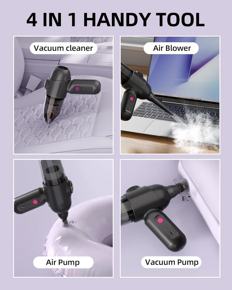 Car Vacuum V6 Pro, Cordless Handheld with 8000Pa Suction, Black Product Details Brand: EBOSSOM Special Feature: Lightweight, Cordless, Compact, Washable Filter, HEPA Filter Type: HEPA Filter Included Components: Inflate nozzle*3, USB-C charging cable*1, User manual, 2 in 1 Suction nozzle*1, Cleaning brush*1, HEPA Replacement*1, EBOSSOM Car vacuum V6 Pro*1 Is Cordless?: Yes Capacity: 180 Milliliters Recommended Uses For Product: Car,Home,Office Form Factor: Handheld Color: Black Model Name: Vacuum Cleaner V6 Pro Product Dimensions: 7.1"L x 2.5"W x 6.6"H Battery Description: Lithium-Ion Manufacturer: Hunan Weilichi Technology Co.,LTD. Number of Items: 1 Controller Type: Push Button Control Method: Touch Portable: Yes Is Electric: Yes Item Weight: 12.3 ounces Item model number: V6 Pro Batteries: 1 Lithium Ion batteries required. (included) Batteries required: Yes Battery type: Lithium-Ion Included Components: Inflate nozzle*3, USB-C charging cable*1, User manual, 2 in 1 Suction nozzle*1, Cleaning brush*1, HEPA Replacement*1, EBOSSOM Car vacuum V6 Pro*1 Inflate nozzle*3, USB-C charging cable*1, User manual, 2 in 1 Suction nozzle*1, Cleaning brush*1, HEPA Replacement*1, EBOSSOM Car vacuum V6 Pro*1Inflate nozzle*3, USB-C charging cable*1, User manual, 2 in 1 Suction nozzle*1, Cleaning brush*1, HEPA Replacement*1, EBOSSOM Car vacuum V6 Pro*1 See more Surface RecommendationPower Source: All floorsBattery Powered VoltageItem Weight: 7.4 Volts0.77 Pounds NOTE: Please fully charge the vacuum before use. Low battery or blocked filters may affect suction, clean the washable filter after each use to ensure the max. suction power. Do not use it on wet surface, keep the device dry. Charge it every 3 months if not used ENLARGED SUCTION OPENING: 1.8" Enlarged suction opening easily offering swider coverage. Speeding up the cleaning process by 30%, making car cleaning simpler and more efficient than ever, saving you time so you can enjoy your day more 8000PA SUCTION FOR REAL: The car vacuum's 8000Pa suction is for real and sufficient for daily use. Eco mode at 6000Pa runs for up to 25 minutes, while fast mode gives you 13 minutes of high-speed cleaning MULTI-SCENE APPLICATION: Not just for cars! Its portable design makes it an excellent companion for quick clean-ups at home or in the office, handling dust, dirt, and debris effortlessly 4-IN-1 SOLUTION: More than a car vacuum, it’s a versatile tool that can inflate swim rings or other inflatables, deflate them for easy storage, and even serve as an air blower to clean your computer. This handheld device is truly multifunctional