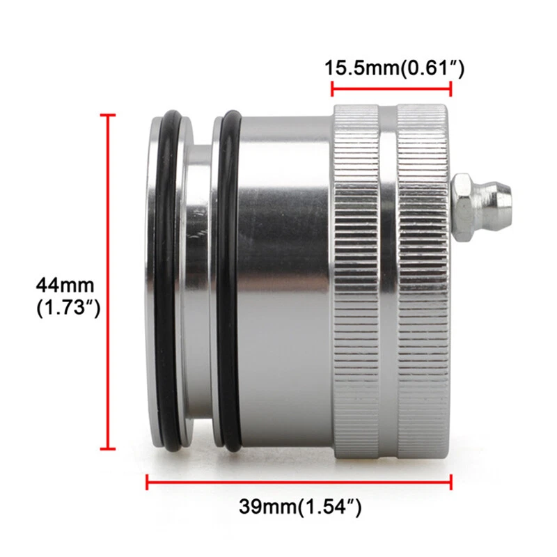 Car Wheel Bearing Greaser Repair Tool 44mm Bearing Oil Injection Tool for 6584 {LIS_PIC} UTV and ATV bearings constantly fail. Adding grease remove debris O-Ring seal to keep the grease inside of your bearings, not out between tool and bearing not hurt seals in bearing Product Name: Car wheel Bearing Greaser Repair Tool Applicable models: All UTV And ATV Weight: 90g Specification: 44mm colour:Silver Material:aluminum Package Contents: 1*wheel Bearing Greaser Only the above package content, other products are not included. Note: Light and different displays may cause the color of the item in the picture a little different from the real thing. The measurement allowed error is +/- 1-3cm.
