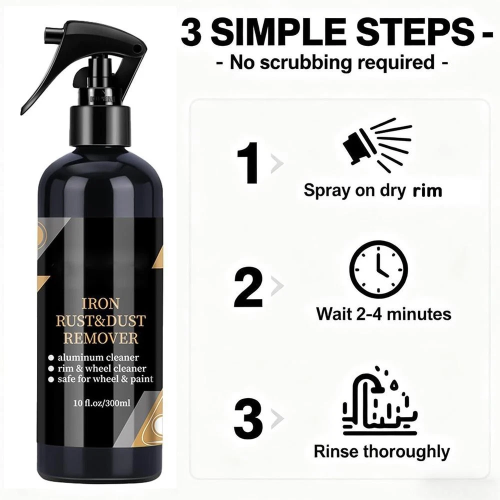 Description Description&Preview shipping&policy Description: Description Specially designed to dissolve stubborn brake dust and embedded dirt on vehicle rims and tires, it is highly effective in removing brake dust and dirt. Quick-acting and easy to wash Just spray this product evenly onto the dry rim of the cup, let it stand for 2 to 4 minutes, scrub it with a brush, and then rinse it thoroughly. Applicable to all types of rims This formula is suitable for all rim , including aluminum alloy, steel and painted rims. Flexible concentration, longer-lasting use The concentrated solution can be directly used for heavy cleaning or diluted with water for daily maintenance. Deep cleaning This product penetrates and removes dirt. Use as needed. The packaging includes: 1*Wheel rust removal spray Preview: Thank you for your purchase Problems? You can follow below process to contact us. There is a time zone difference,but we will do our best to quickly response to your questions: Shipping ● We will arrange shipping for you within 24 Hours after payment cleared except the holidays. ● We always send the item to the address you give us on Payoneer to ensure the security of the item. If you have changed your address, or want us to ship to another address, please change to the new address when you pay us with Payoneer, otherwise we will not be responsible if the package is lost. Payments We accepts Payoneer only If you have any questions about the payment,please contact us through eBay message. Import Duties In case some duty is due Upon delivery, it is your responsibility to meet that expense and this may cause delays to delivery schedule and you may have to pickup goods at the customs office. Terms & Conditions By bidding on this item,the Buyer agrees to all of the terms and conditions as outlined in this listing .please ensure to read and agree to All eBay terms and Conditions before bidding. All pictures are for illustration purpose only and Colours may vary slightly. Our store obeys all eBay Rules and Policies. Returns Policy To Return an item you must contact us and take photos of your item to clearly show any damage or unusual aspects of it. Approved returns will be subject to inspection on arrival. Items must be returned in original condition with all original packaging. All shipping and handing charges are non-refundable Return delivery costs are the responsibility of the buyer. We will cover the cost if sending replacement/repaired items. Within 7 days after receiving your products, we offers a no-hassle 7 day exchange/replace only if your items are found to be defective by manufacturer.