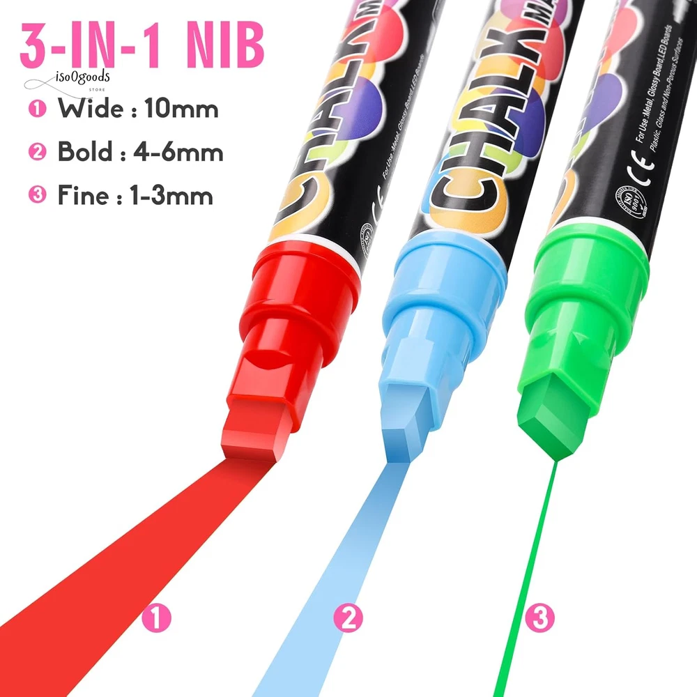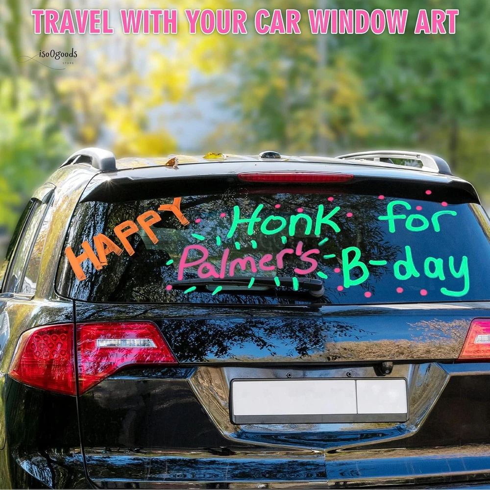 Brighten Up Your Creativity with Premium Window Markers! 🌟 High-Quality Window Markers: These chalk car window markers glide effortlessly on most non-porous surfaces, leaving smooth, even lines without the streaks of regular dry-erase markers. Erasable, water-based, non-toxic, odorless, and dust-free with quick-drying, bold coverage. 🎨 Bold & Vibrant Colors: With a set of 8 vibrant, fully opaque colors, these markers are perfect for bistro menu boards, café menus, lunch menus, and LED boards, grabbing the attention of customers and passersby. The 10mm nib offers 3 versatile tips—wide, bold, and fine—to meet all your creative needs. 💧 Easy Wet Erase: Effortlessly remove mistakes or designs from non-porous surfaces with a damp cloth—no dusty mess! Always test on a small area of porous chalkboards, as they may absorb ink and leave residue. 🚗 Perfect for Car & More: These markers are ideal for decorating car windows, windshields, glass doors, mirrors, and more. Great for graduation, birthdays, anniversaries, weddings, DIY projects, and notes on mirrors or calendars. Indoor and outdoor use for all occasions. Clean-up is simple—just use a wet cloth or rag with a little soap! 👍 Satisfaction Guaranteed: Designed for durable and vibrant results, let the chalk paint dry for longer-lasting designs. Use protective plastic film to preserve your artwork. Whether for gifts or creative decoration, this set of craft supplies is a must-have. Why Choose These Chalk Window Markers? Dust-Free & Mess-Free: Enjoy clean and precise designs without the hassle. Versatile Uses: Suitable for car decorations, menu boards, gym boards, chalkboards, and more. Easy to Use & Clean: Perfect for beginners and experts alike. Bring your ideas to life with these vibrant, washable window markers. Order now and make every surface your canvas!