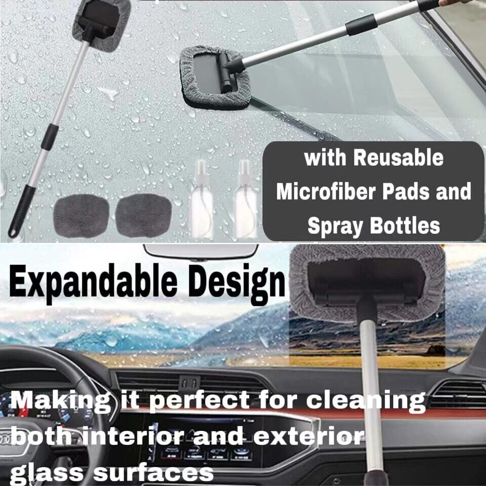 Windshield Wow Magnetic Car Window Cleaner Expandable Cleaning Supplies for Car Features 1. Multi functional and versatile design: This windshield window cleaner is an essential tool for both cars and homes. Its scalable design makes it suitable for various window sizes, making it very suitable for cleaning internal and external glass surfaces. 2. High quality microfiber mat: equipped with reusable microfiber mat and spray bottle, this window cleaner provides a gentle and effective method to remove dust, dirt and stains. The pad is washable and reusable, ensuring long-lasting performances and reducing waste. 3. Durability and Portability: The windshield and window cleaner is made of durable materials to ensure long-term use. Its lightweight and compact design makes it easy to store in cars or homes, and can be used anytime when needed. Whether you are traveling on the road or just cleaning at home, this cleaner is a must-have for keeping windows clean and shiny. 4. Easy to use and store: The windshield and window cleaner is designed for user friendliness and has a simple and effective mechanism to achieve smooth and controlled cleaning. Its compact size also means it can be easily stored in a car or home and can be used at any time. 5. Multipurpose: This windshield cleaner has versatile functions, high-quality materials, and accompanying accessories, providing excellent value for money. Whether you are a professional beautician or just looking to keep your car and windows clean, this tool is a good choice. Specification Material: aluminum alloy, ABS, PP, PVC, ultrafine fiber Dimensions: Handle retracted 27cm long, extended 45cm, pipe diameters of 16 and 19mm Color: Grey Size: 45 x 15 x 1 cm Weight: 195 g Package Include: 1x Handle 1x Base plate 2x Fabric cover