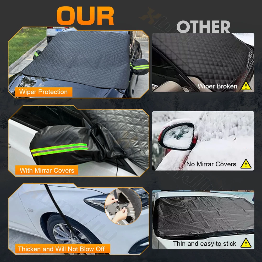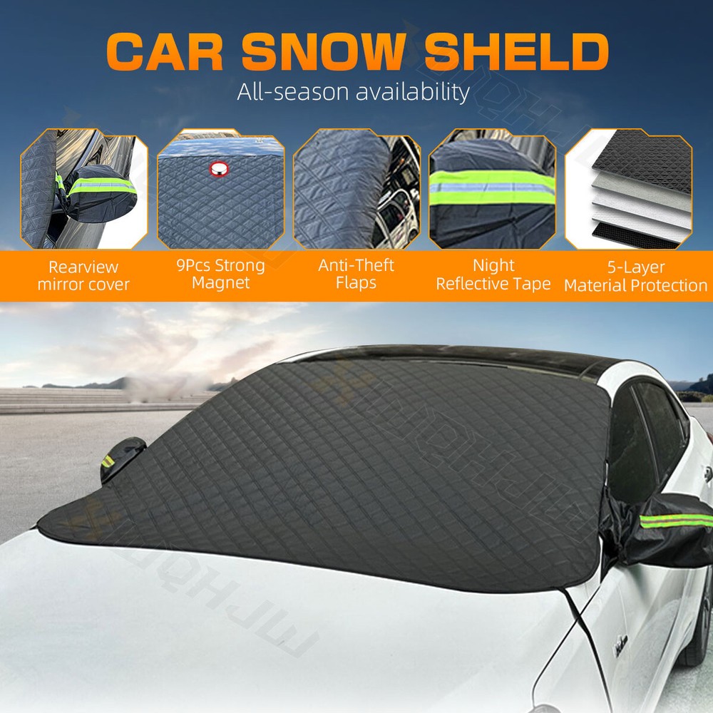 ITEM DESCRIPTION Features: -- Strong protection in all weather: The car window cover will help you keep the snow, ice and frost away from your windshield.Also it will protect your windshield from tree sap, pollen and fallen leaves. -- 5 Layer Material:Five-layer cotton-sandwiched composite .Thicker and durable design make the windshield snow cover fit your car snugly even in a windy day and give your car well protection. -- Ideal Size For Most Cars: 180*139CM sized car windshield snow cover is the best size windshield snow cover for Truck, SUV and cars. -- Easy To Secure: Our car windshield cover uses 9 magnets and extra-long side panels that fit inside your closed car doors to securely keep it in place. -- Anti Theft: The side panels which close inside the front car doors help prevent and deter thieves from stealing the windshield protector and from being blown away by the wind. -- put on the mirror cover:night Reflective Tape.protection of rearview mirror Specifications: Material: Five-layer cotton-sandwiched composite Color: Car Black Cover Vehicle Service Type: Passenger Car Closure Type: Magnetic Product Size: about 180*139 70*54in Function:Car front guard, frost, snow cover Packing include: 1 x Car Black Cover vacuum packaging Contact Us: Thank you for purchasing our product! Dear customer, if you have any inquiries, quality problems or inappropriate or other problems about our products, please do not open a return dispute or return application or bad evaluation directly, contact us through eBay information, we will give you a satisfactory solution . We try to reply to your email within 24 hours, but due to the large volume of emails received every day and different time zones, we may not be able to respond to your email immediately. Hope your understanding, thank you On Dec 24, 2024 at 00:41:51 PST, seller added the following information: On Dec 25, 2024 at 03:05:12 PST, seller added the following information: